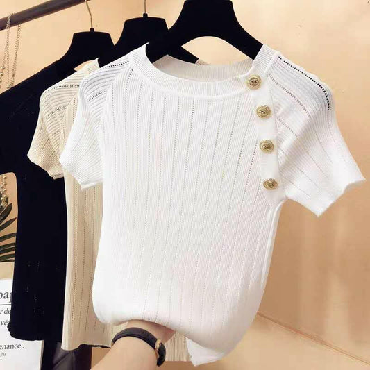New Solid Short Sleeve Ruffle Batwing Short Shirt