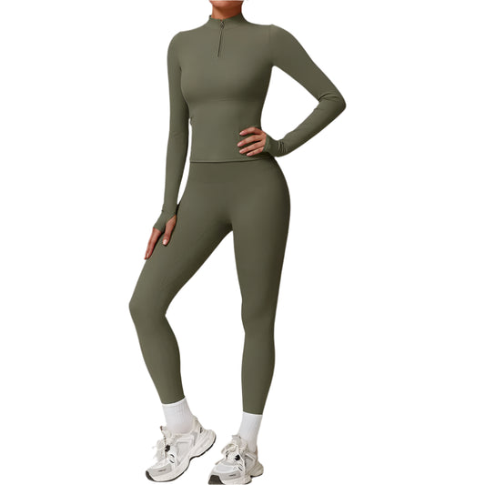 2 piece Seamless Yoga Leggings Long Sleeve Crop bralette fitness set