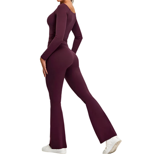 Women's High Waist Leggings off shoulder Long Sleeved t Sports yoga set