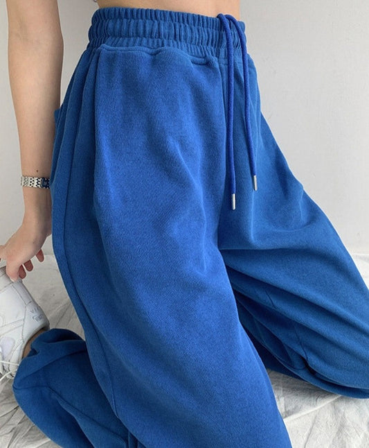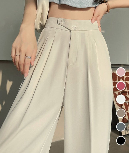 Wrinkle Pattern Lazy Style Elastic Waist Wide Leg Trousers