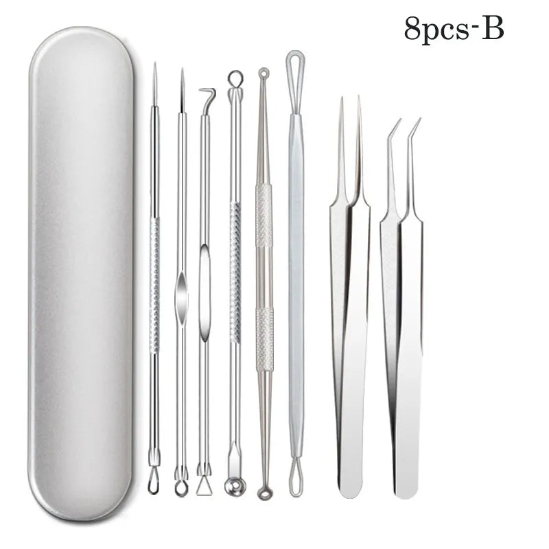 Our 11/8/6/4PCS Acne Blackhead Removal Kit features a complete set of tools designed to help remove bacteria-filled blackheads and acne. Our advanced design allows for easy and safe extraction with minimal skin irritation. Enjoy healthier, clearer skin with our premium kit.