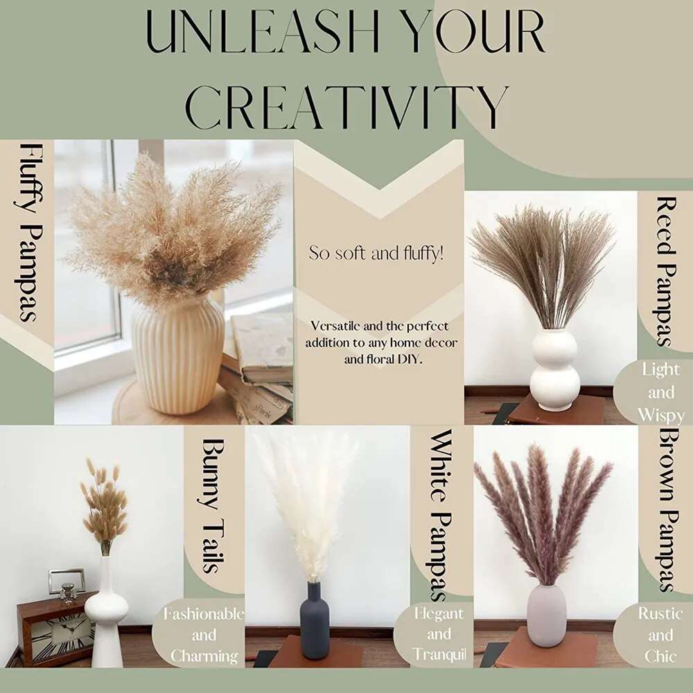 Our 110 PCS Pampa Grass is perfect for adding a natural and rustic touch to your home. Each piece of pampas grass is hand-picked and carefully dried for easy maintenance and long-lasting display. Create a unique statement in any room!