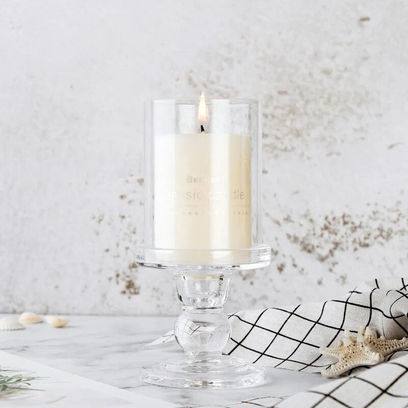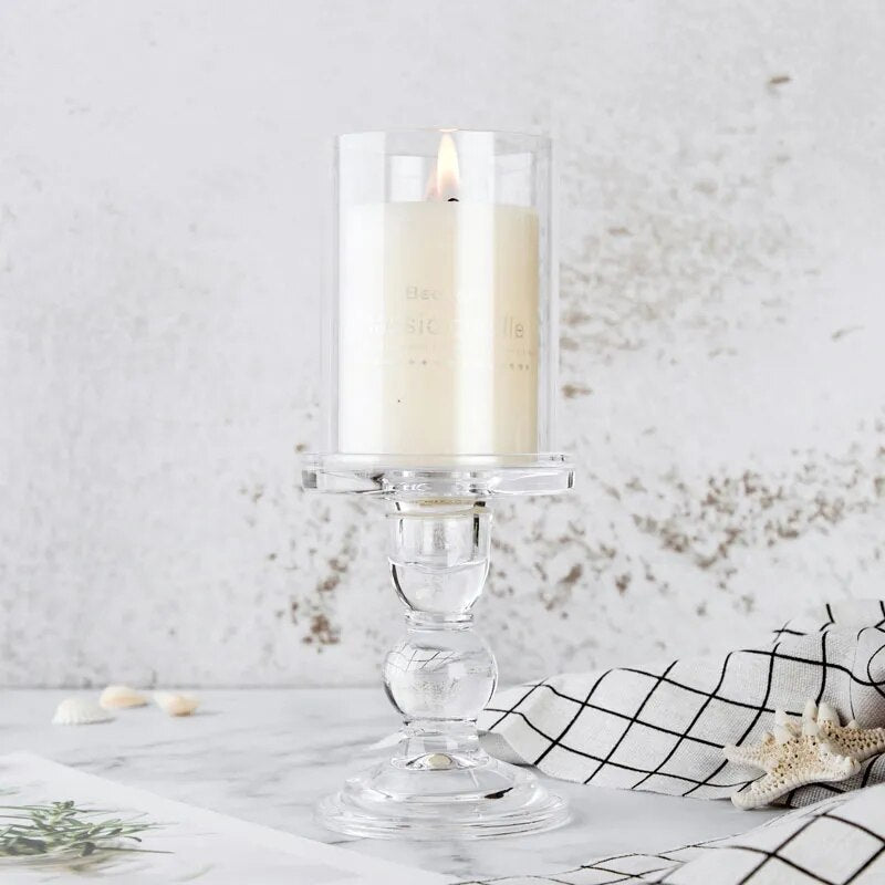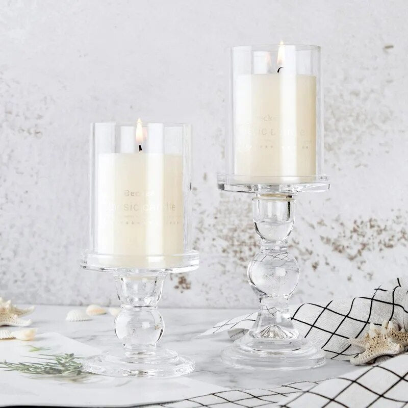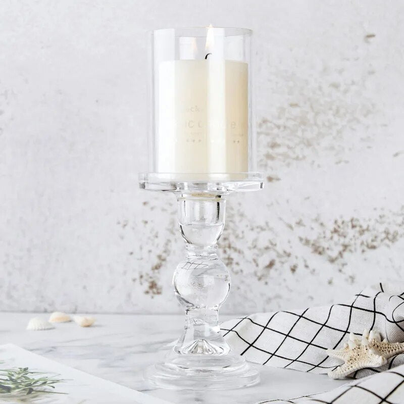 This beautiful glass candle holder is sure to add a touch of sophistication to any home. Available in three sizes, the candle holder is made with durable glass, offering both form and function. Its classic shape makes it a perfect centerpiece for any room.