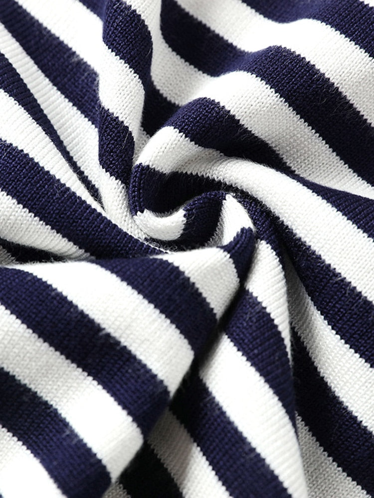 This Striped Knitted Pullover Sweater is crafted with superior comfort in mind. It features a unique striped pattern that allows for excellent breathability and a snug fit for optimum warmth. Crafted with soft cotton blend fabric, this pullover sweater is perfect for everyday wear.