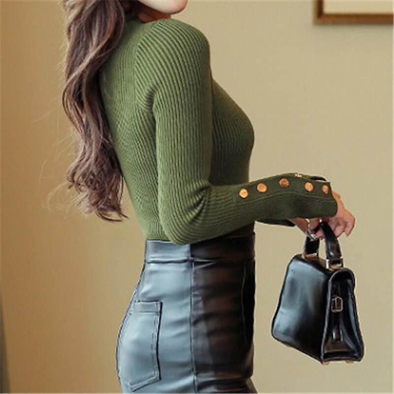 Ribbed long sleeve button detail knitted top