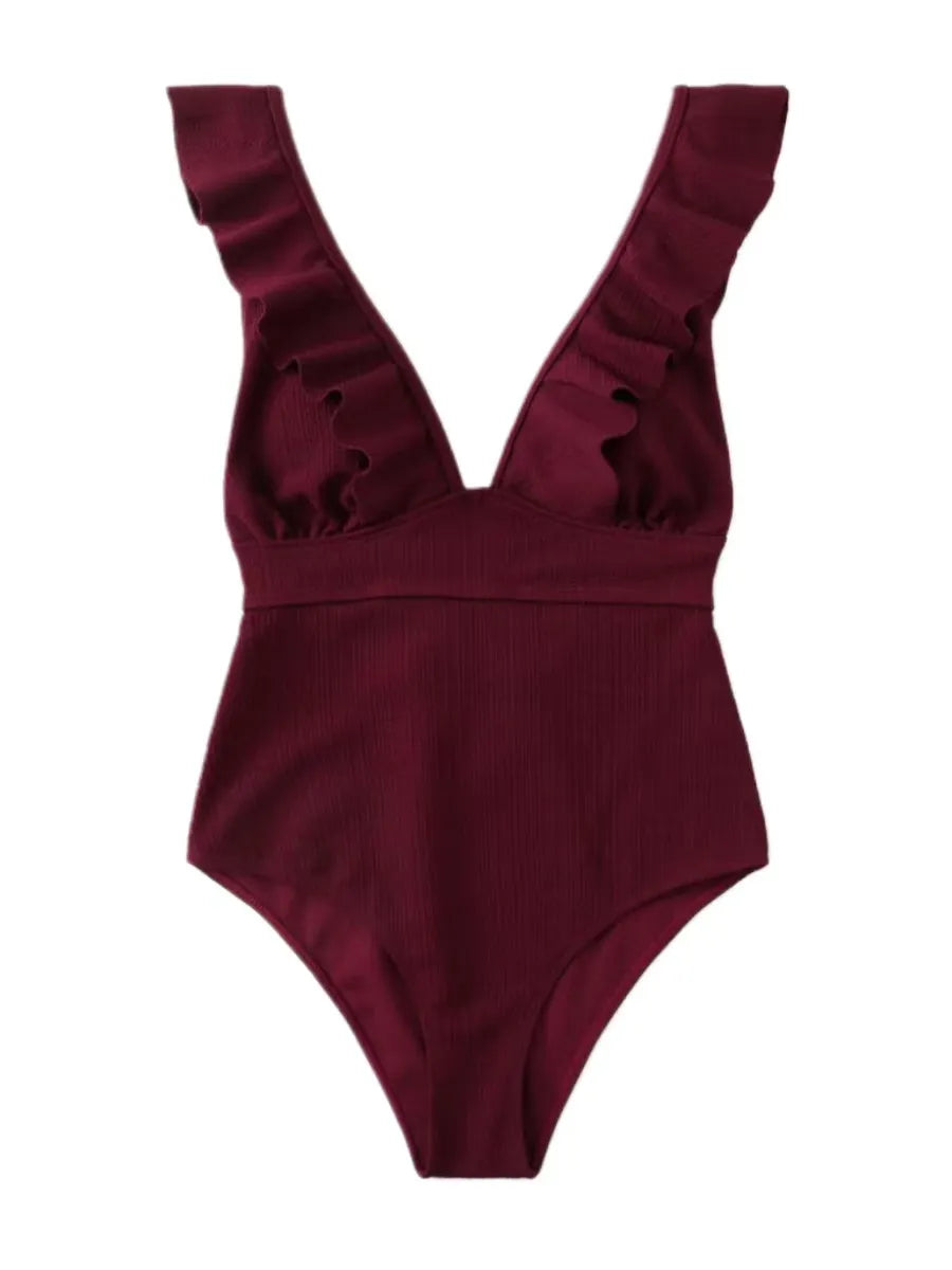 Sexy ruffles plunge One Piece Swimsuit