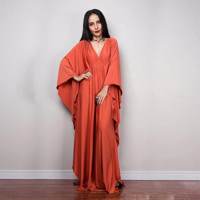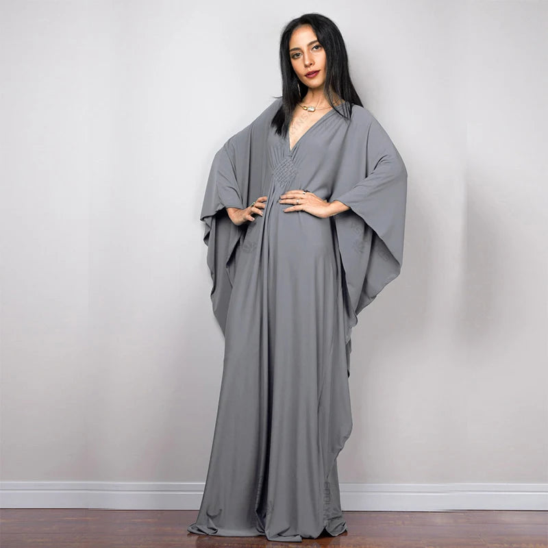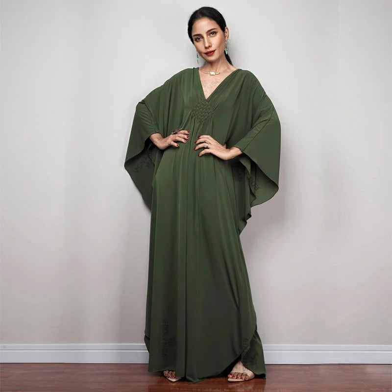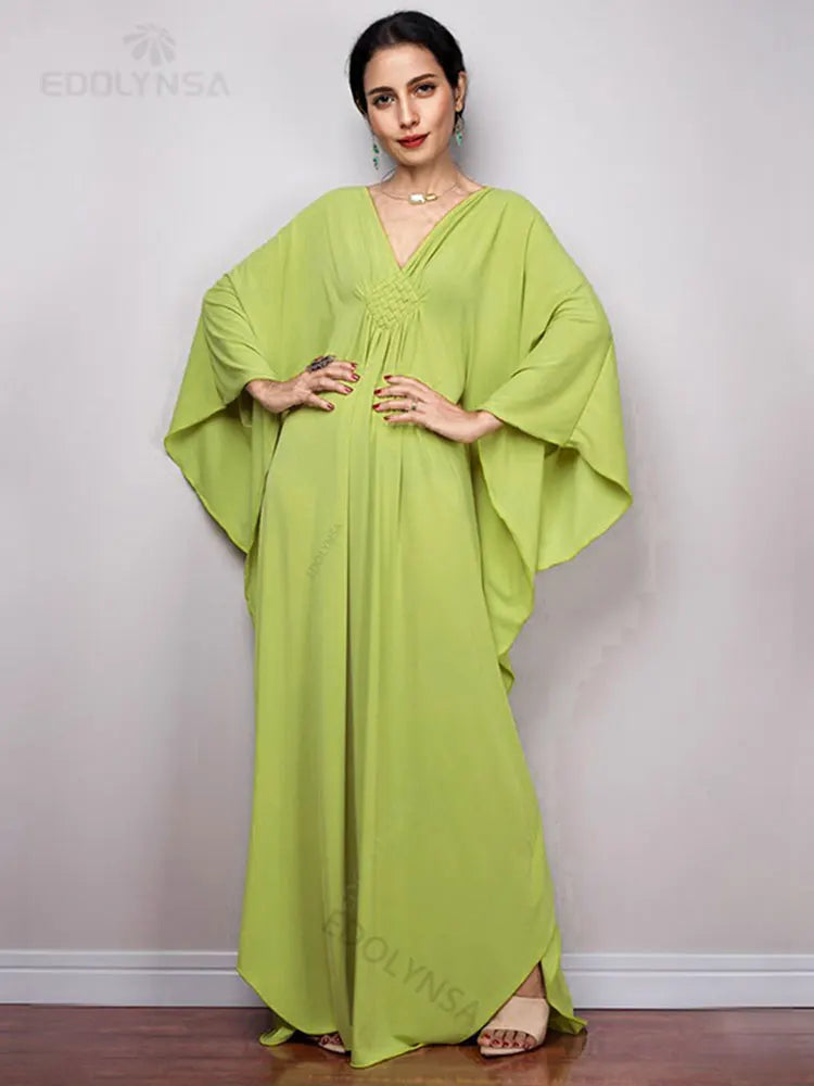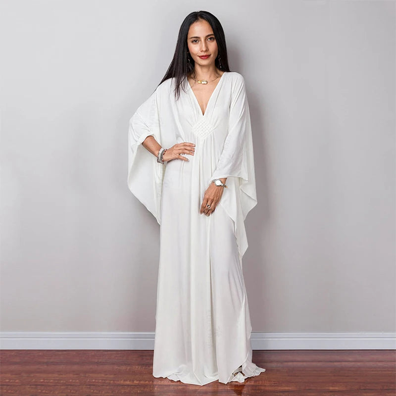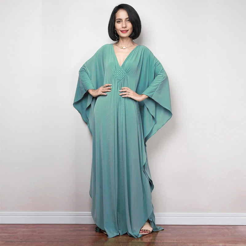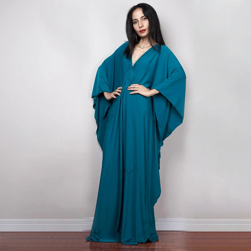 Introducing the must-have addition to your summer wardrobe - the V-neck Sleeve Loose Maxi beach Dress.