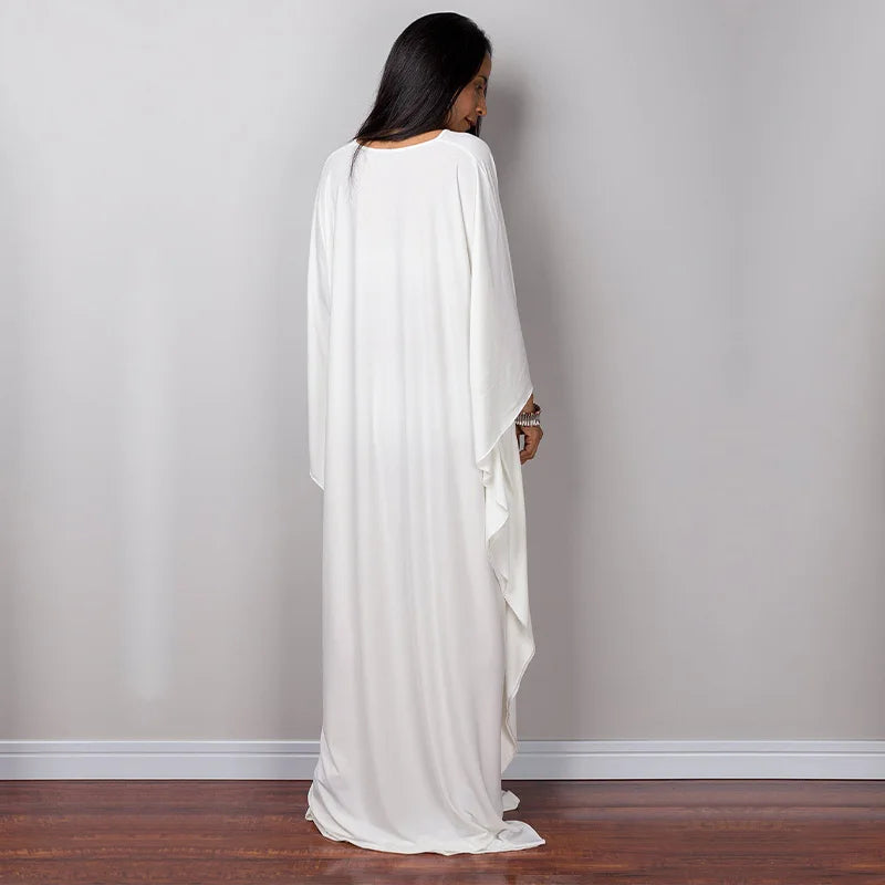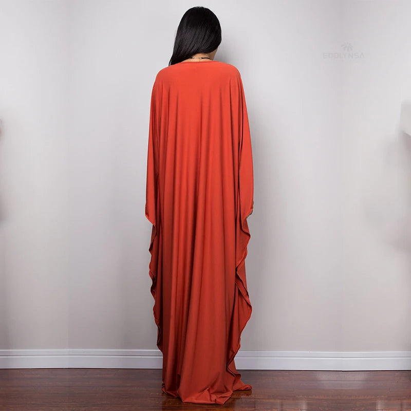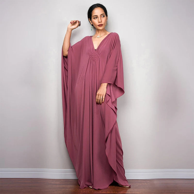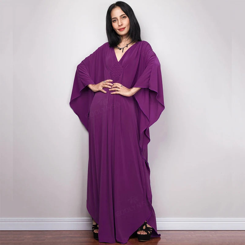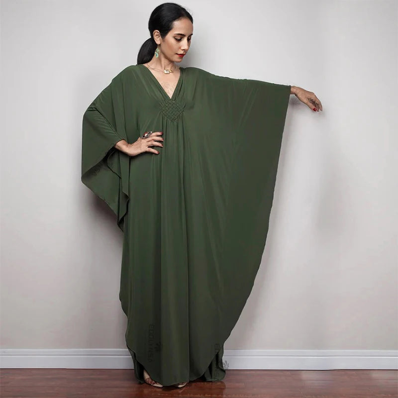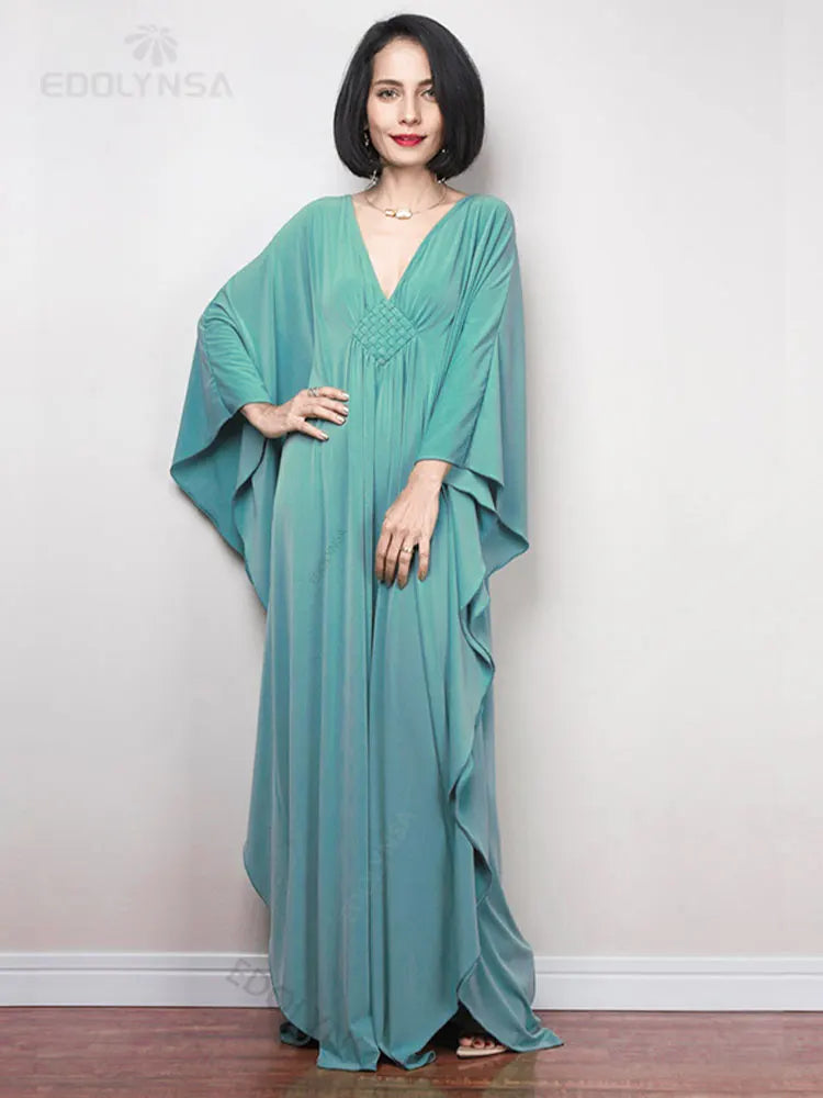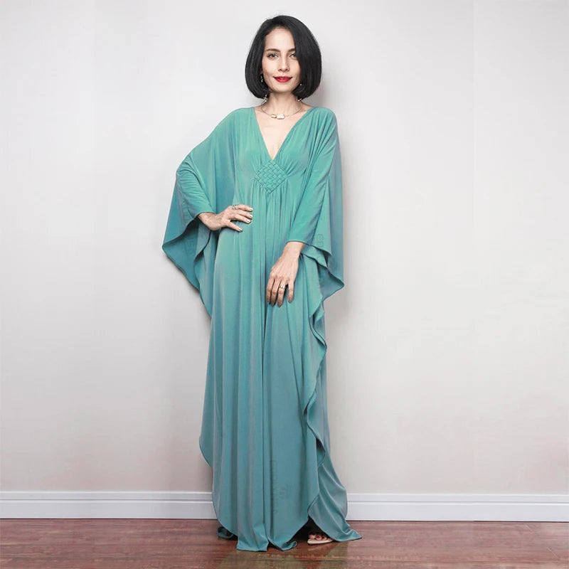 Introducing the must-have addition to your summer wardrobe - the V-neck Sleeve Loose Maxi beach Dress.
