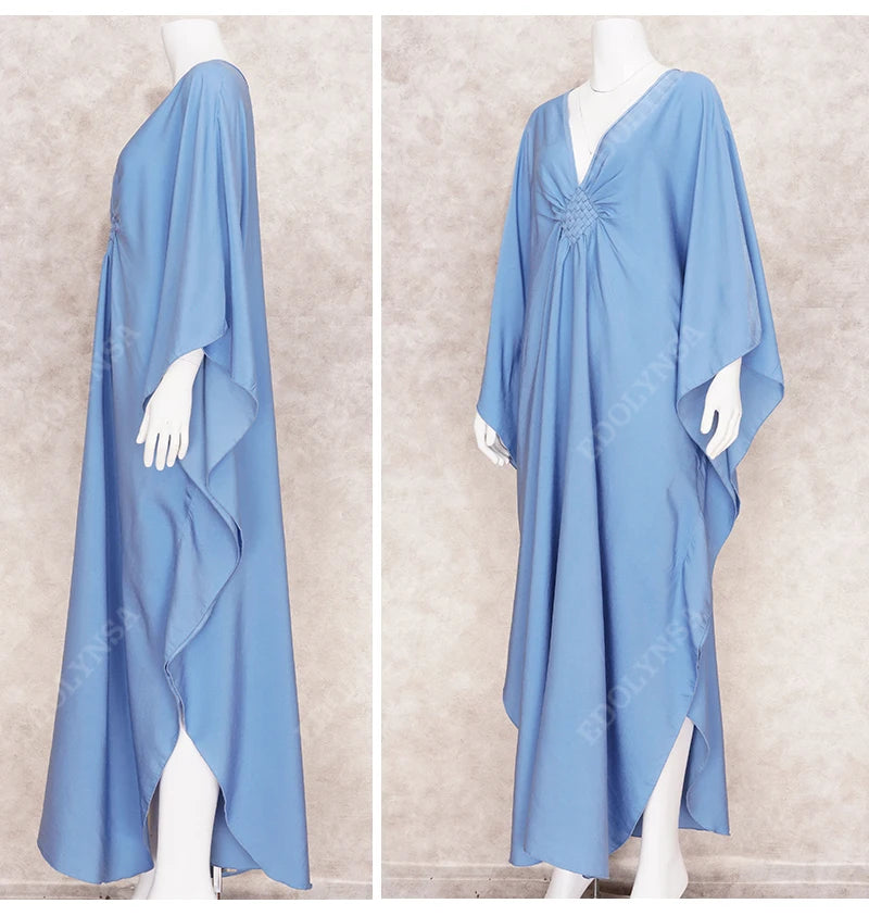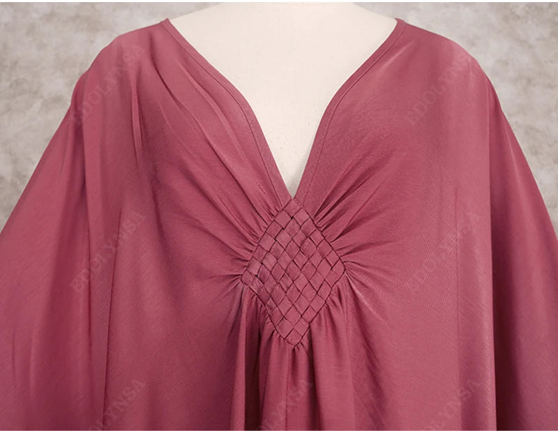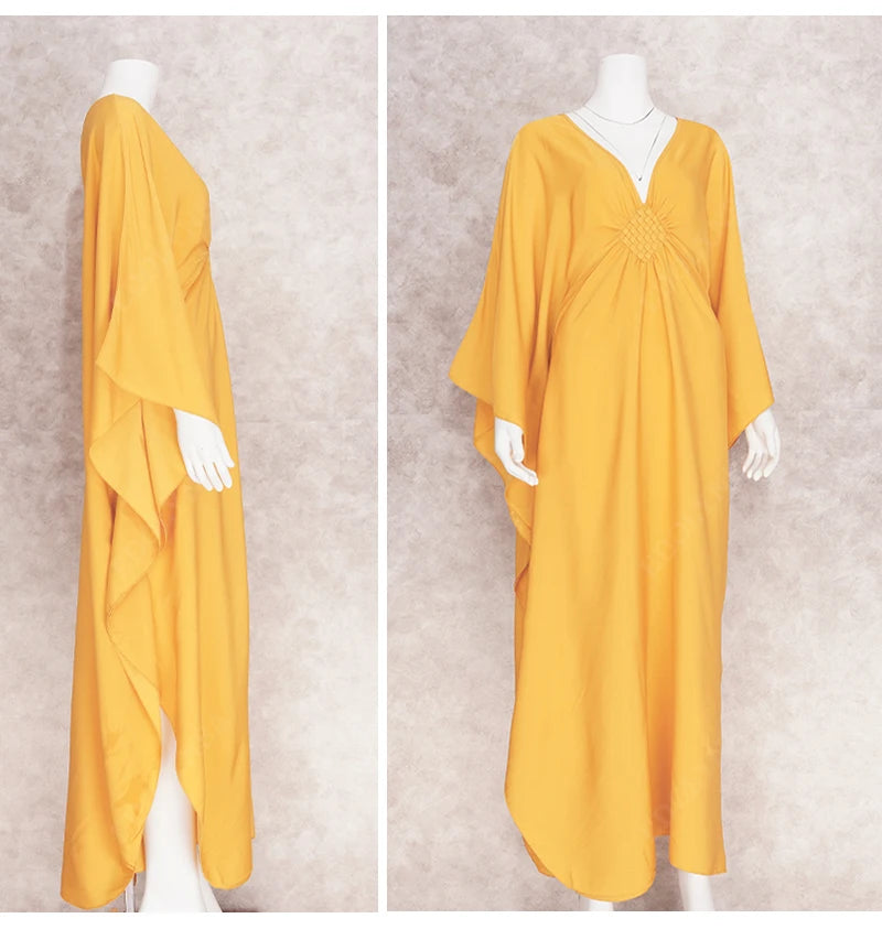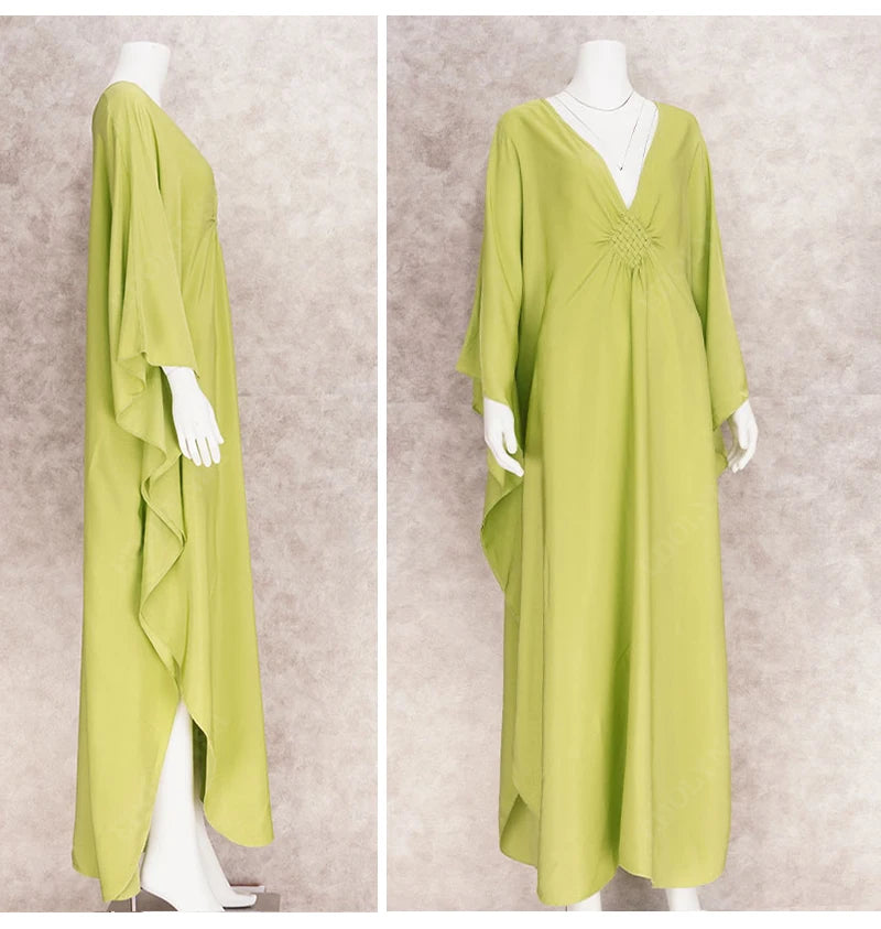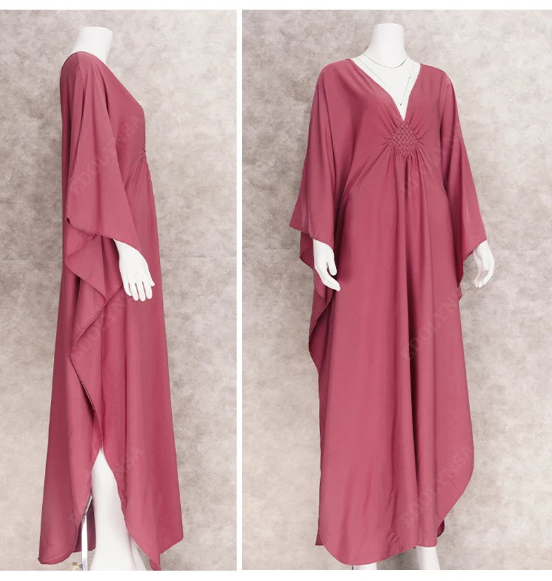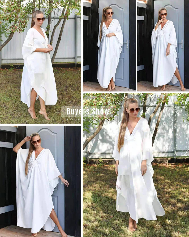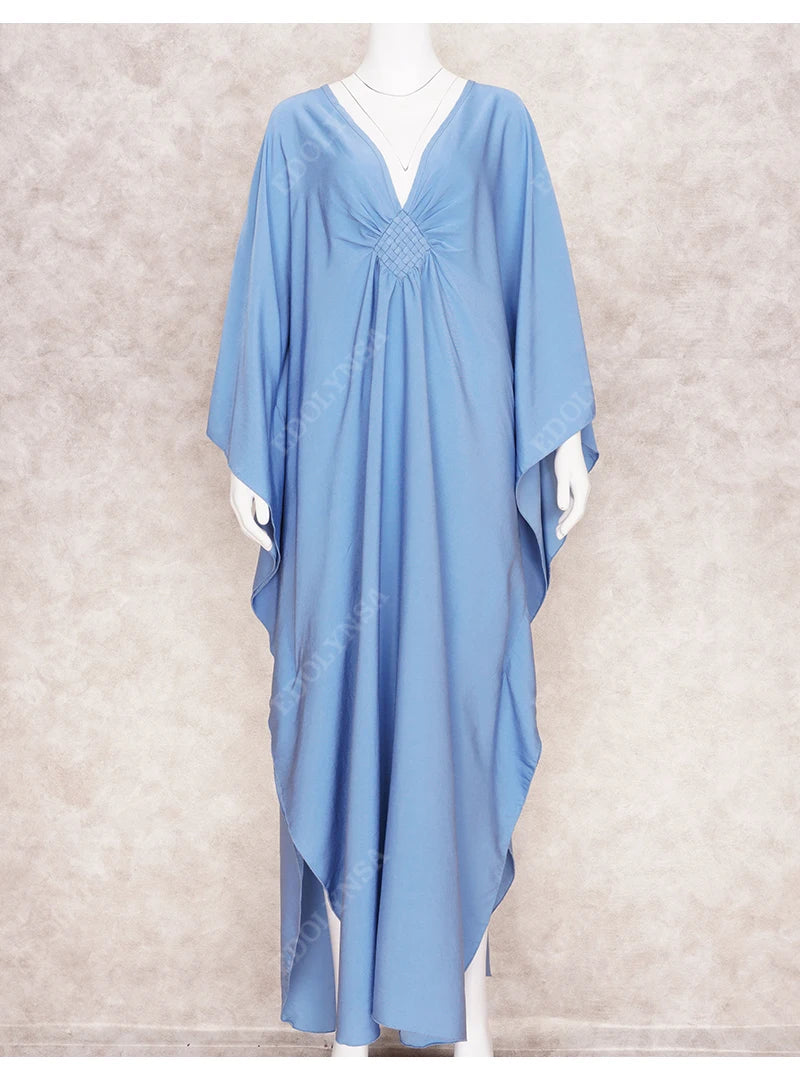 Made from high-quality polyester, this dress is designed to keep you cool and comfortable on those hot beach days. The loose, flowy structure of the dress allows for maximum movement and breathability, perfect for lounging by the ocean or strolling along the boardwalk. The V-neck and batwing sleeves add a touch of elegance and femininity to the overall look.