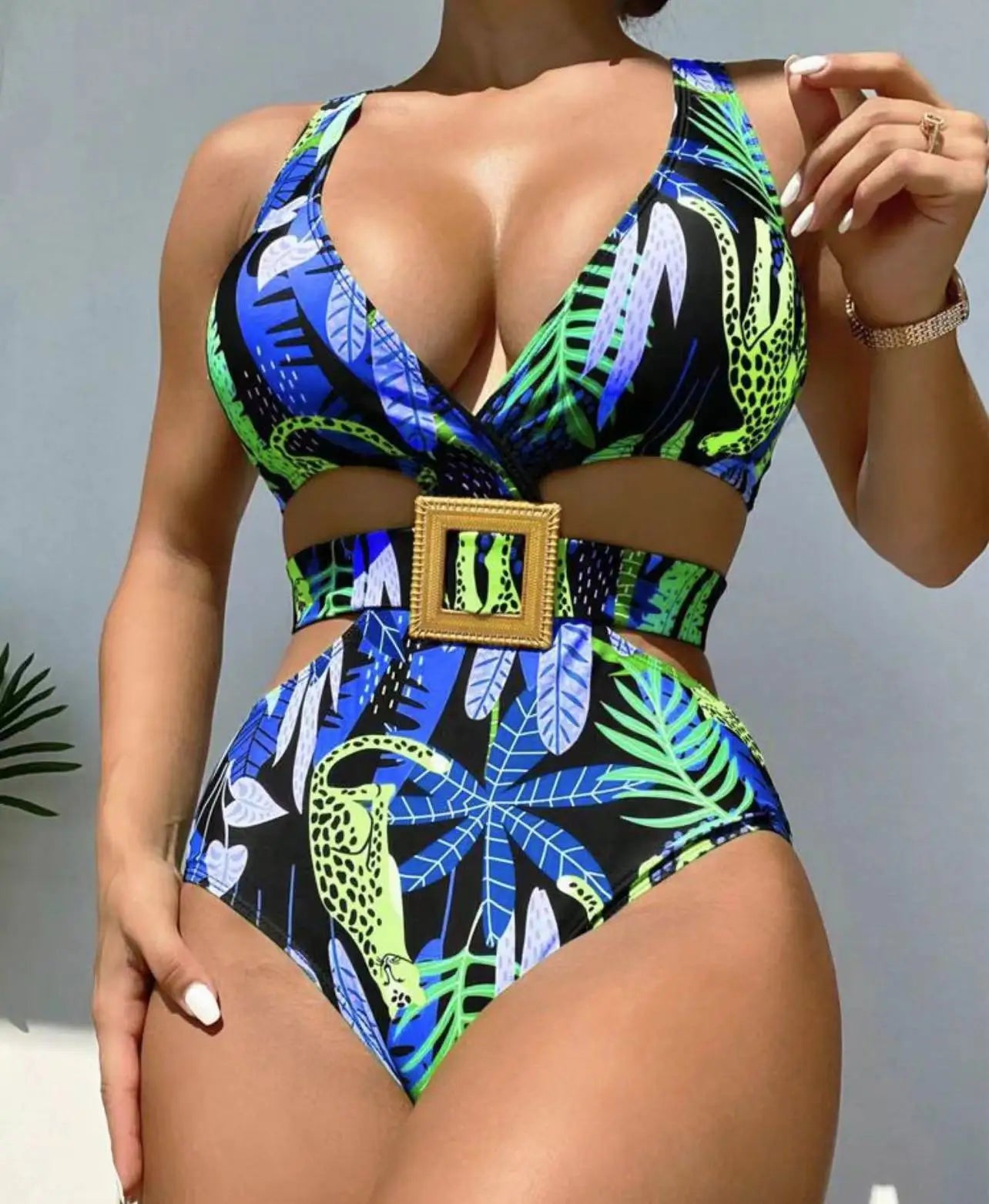This Print belt One Piece Swimsuit is the perfect addition to your swimwear collection.