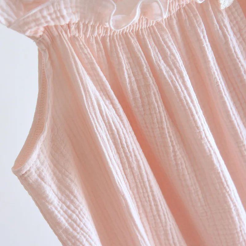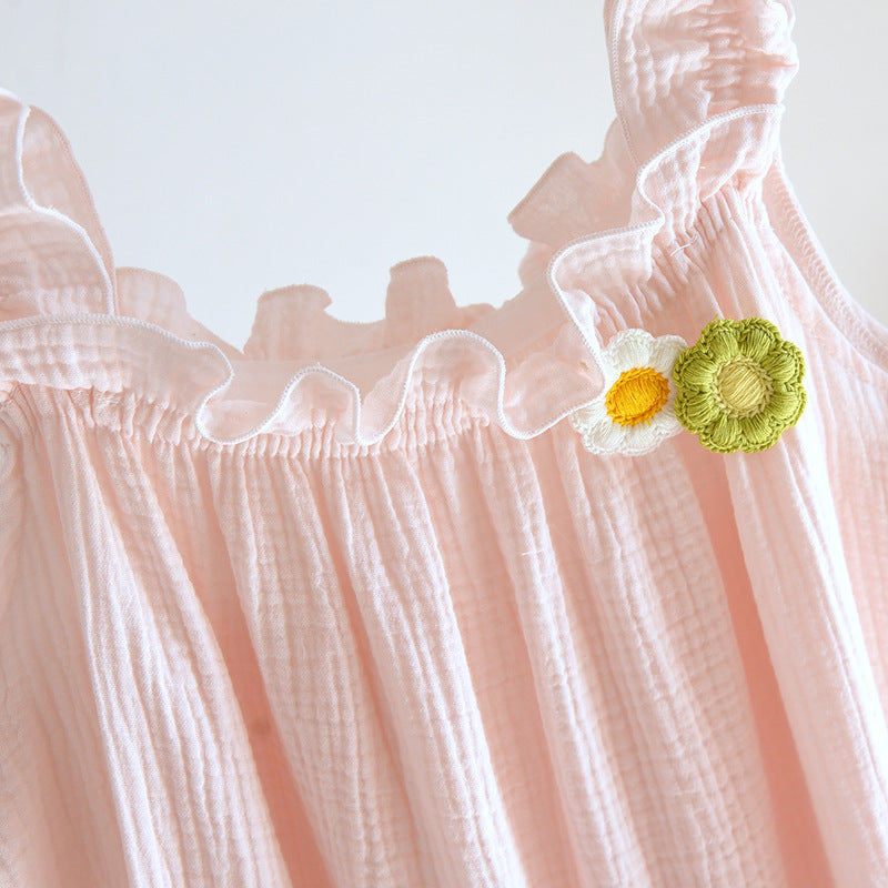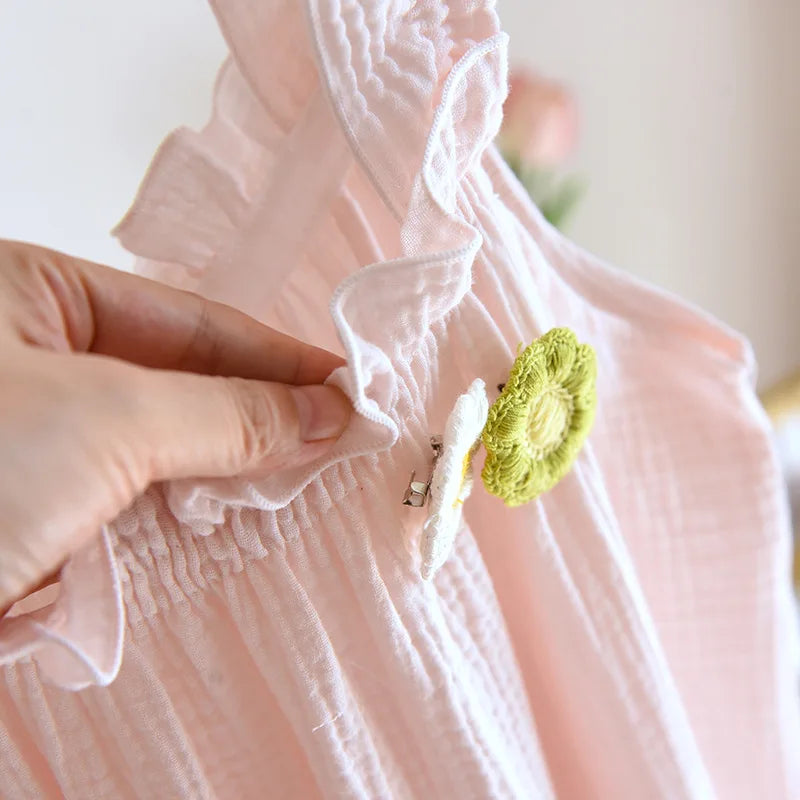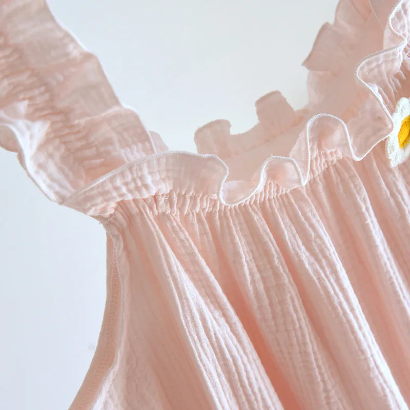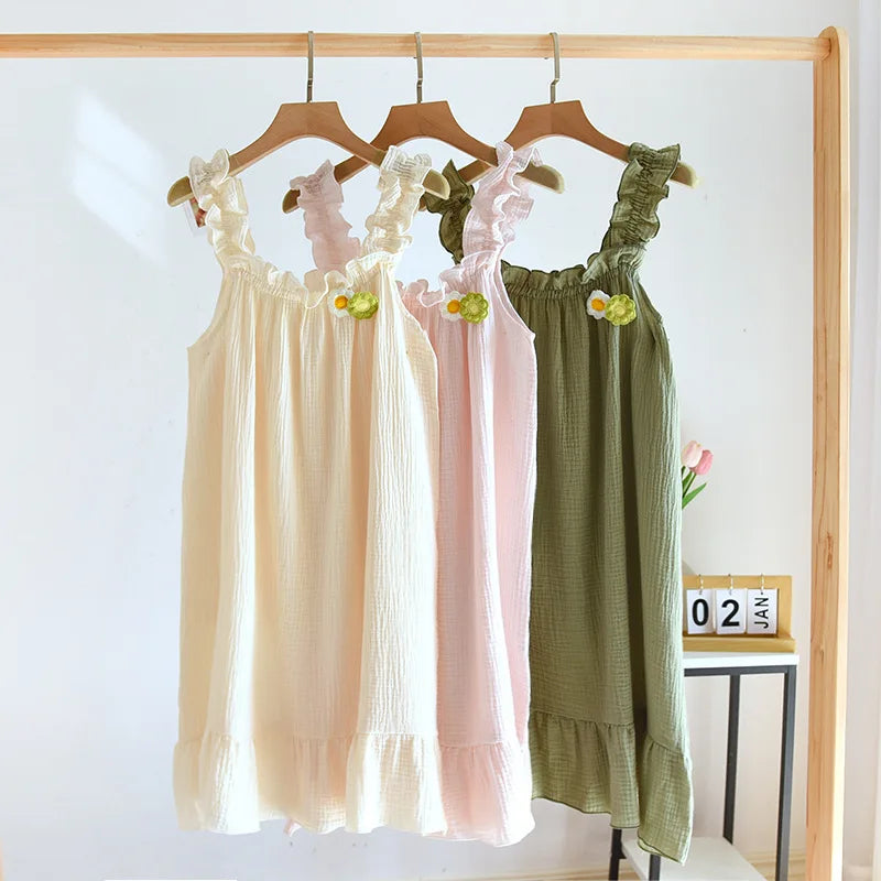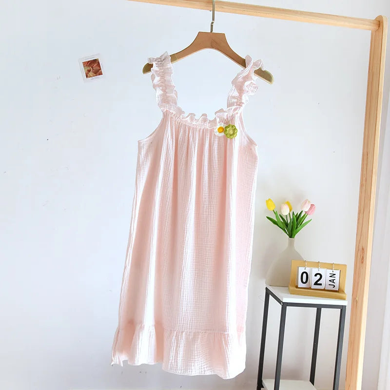 This beautiful night dress is the perfect addition to your sleepwear collection. Made from high-quality cotton, it is soft, comfortable, and breathable, ensuring a good night's sleep. The dress features a solid color design with delicate floral ruffles, giving it a feminine and elegant touch. The suspender style adds a playful element to the dress, making it perfect for lounging around the house.
