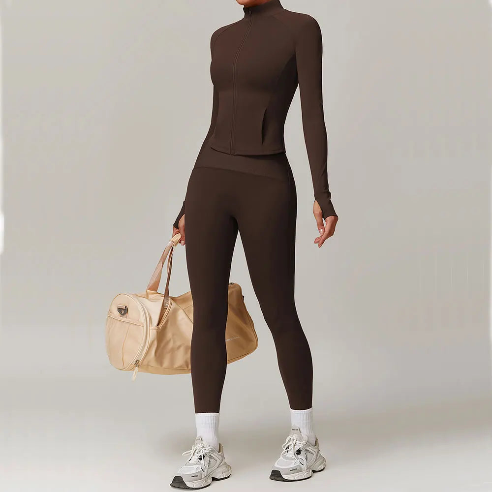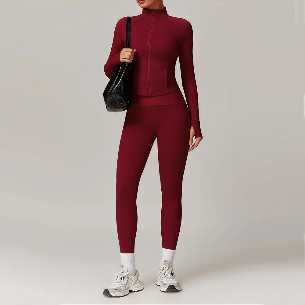 This 2-piece yoga set is the perfect addition to your workout wardrobe. Made from high-quality nylon and spandex materials, it offers both comfort and durability. The set includes a long sleeve crop top and high waist leggings, both designed to provide maximum support and flexibility during your yoga sessions.
