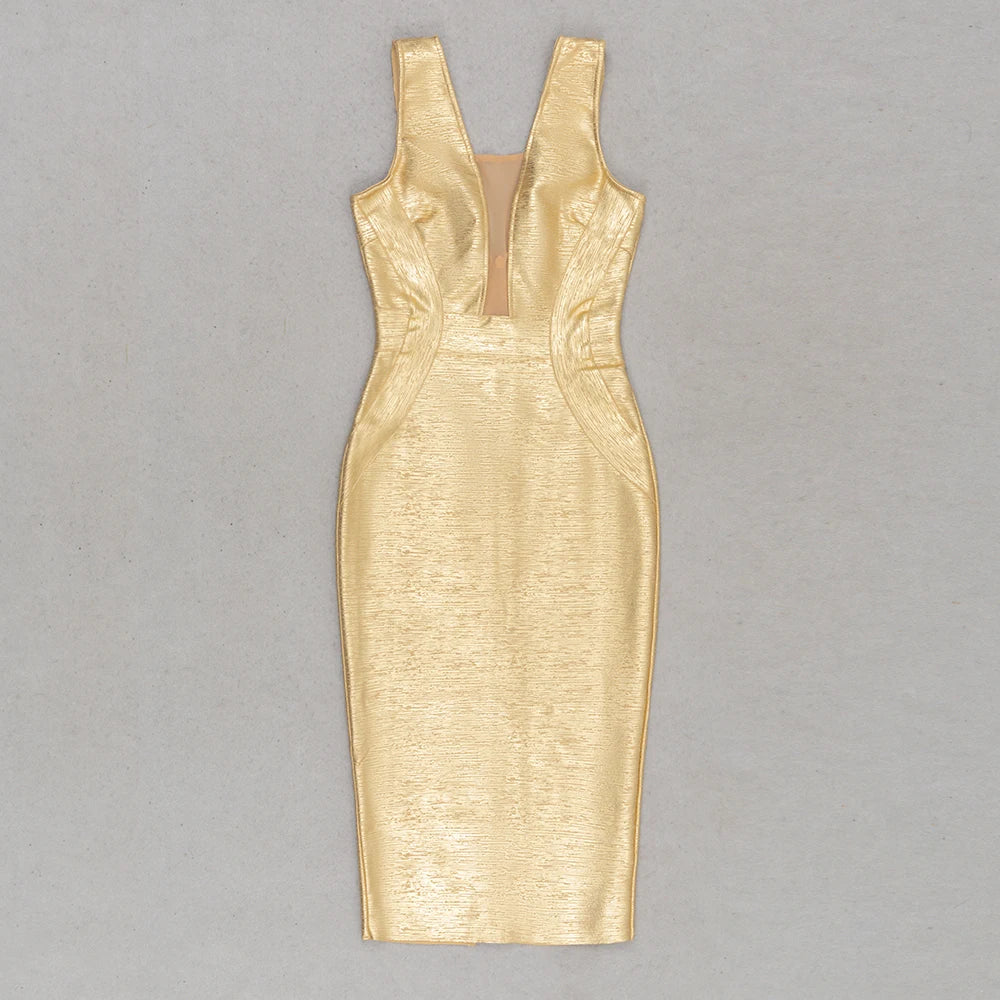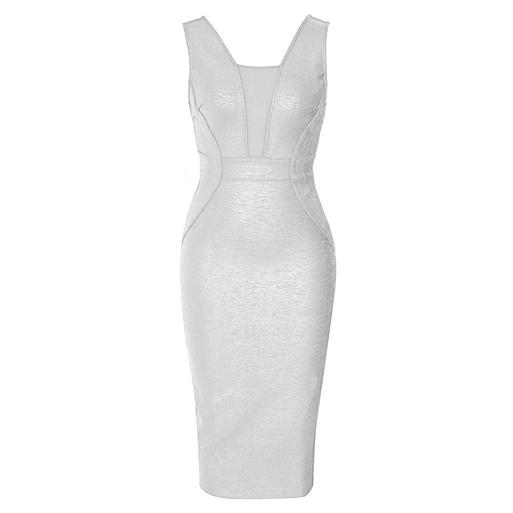 Look stunning and confident in our Mesh Bandage Bodycon Midi Dress. The mesh fabric hugs your curves for a flattering fit, while the bandage design adds a touch of sophistication. Perfect for any occasion, this dress will make you feel beautiful and empowered.
