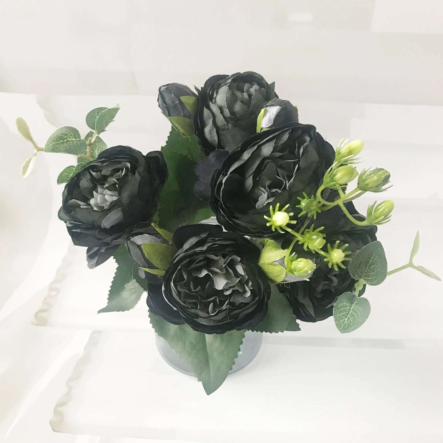 30cm Rose Pink fabric Peony Artificial 5 Flower bouquet