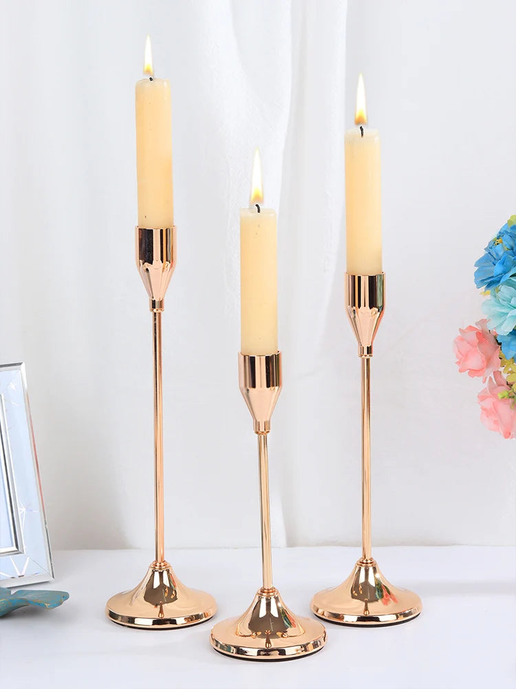These candle holders are not only functional but also stylish, making them a great addition to your home decor. The European style design adds a touch of sophistication to any space. Made from high-quality metal, these candle holders are durable and long-lasting.