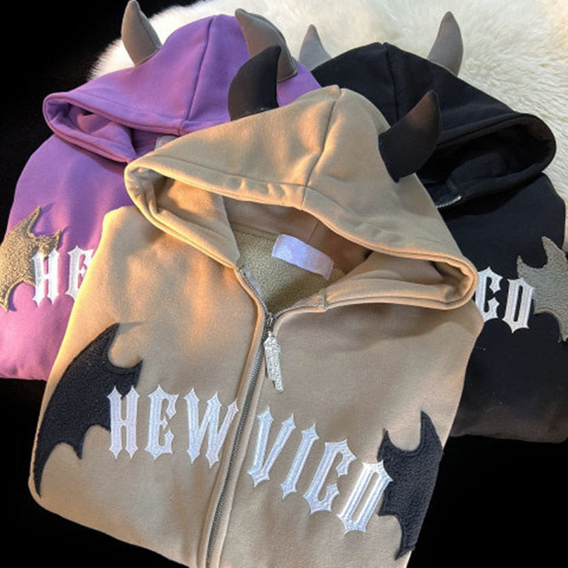 This American Retro Little Devil Horn Hoodies features a unique design to make you stand out from the crowd. Crafted with ultra-soft fabric, this hoodie provides comfort and style. Available in different colours, it's sure to draw the eye and turn heads. Get yours today for a truly special look.