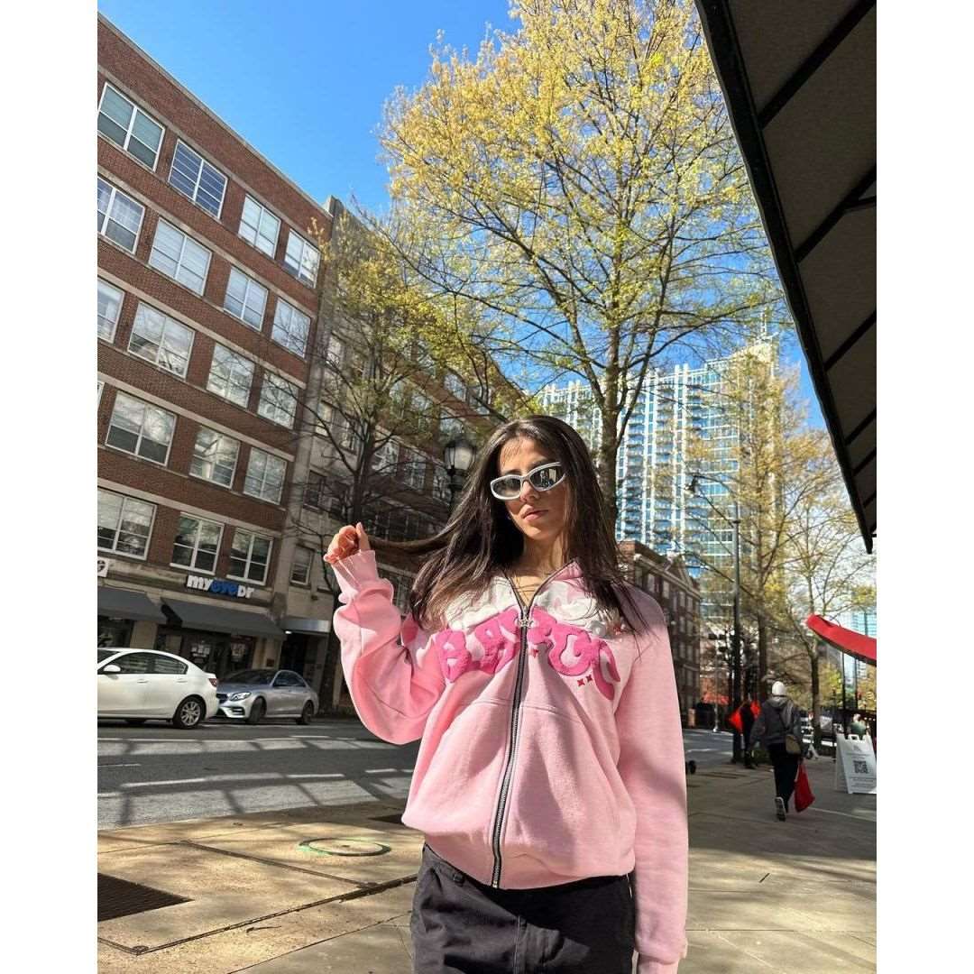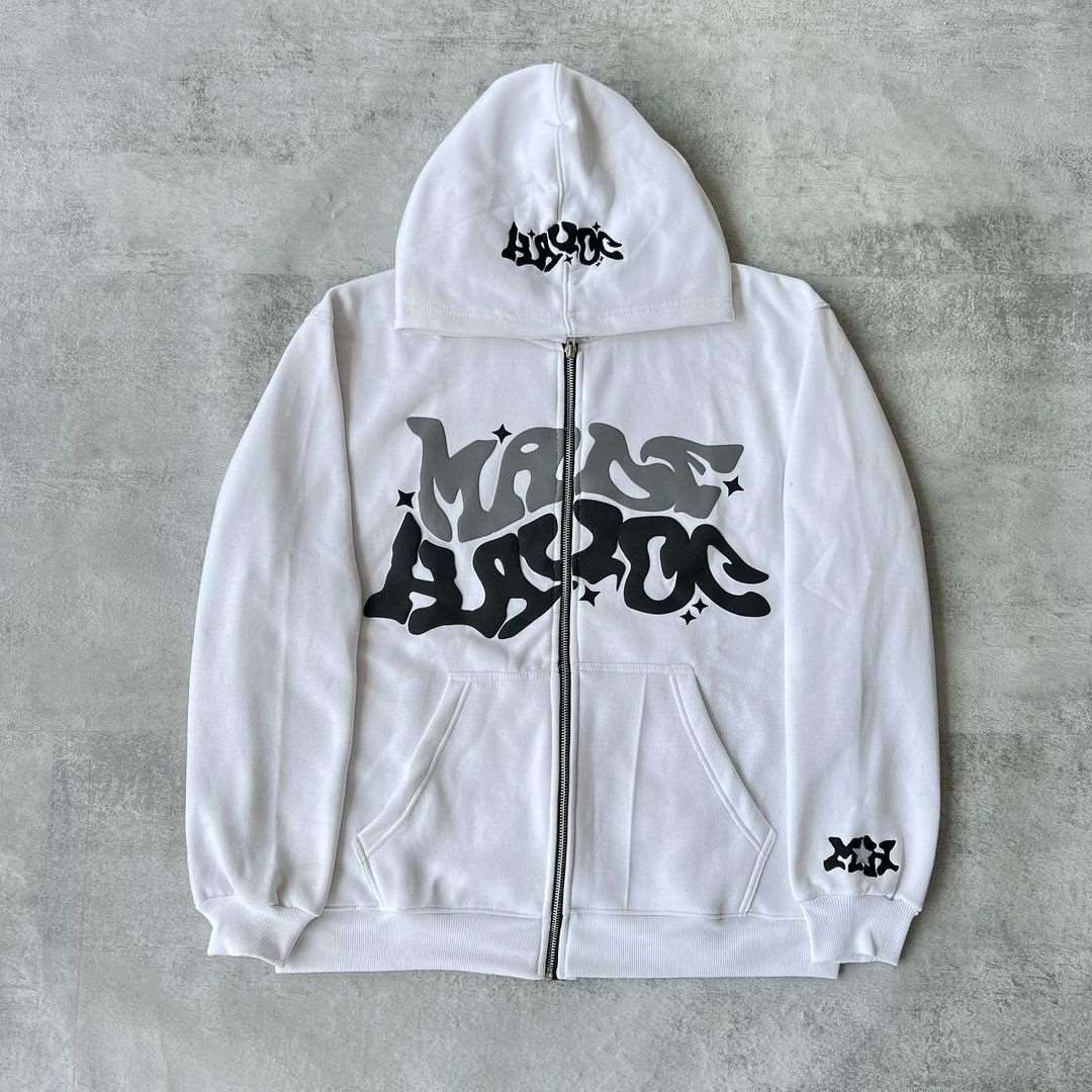 American Streetwear Printed Zipper Hoodie