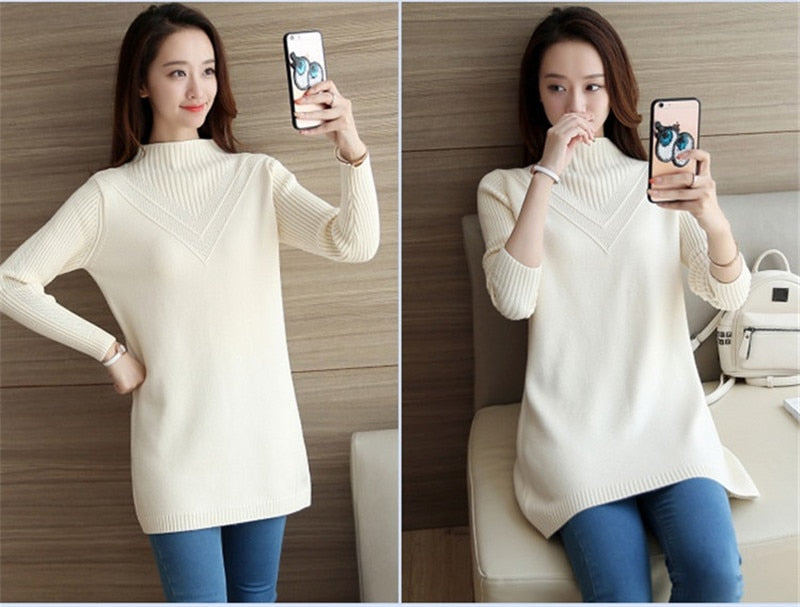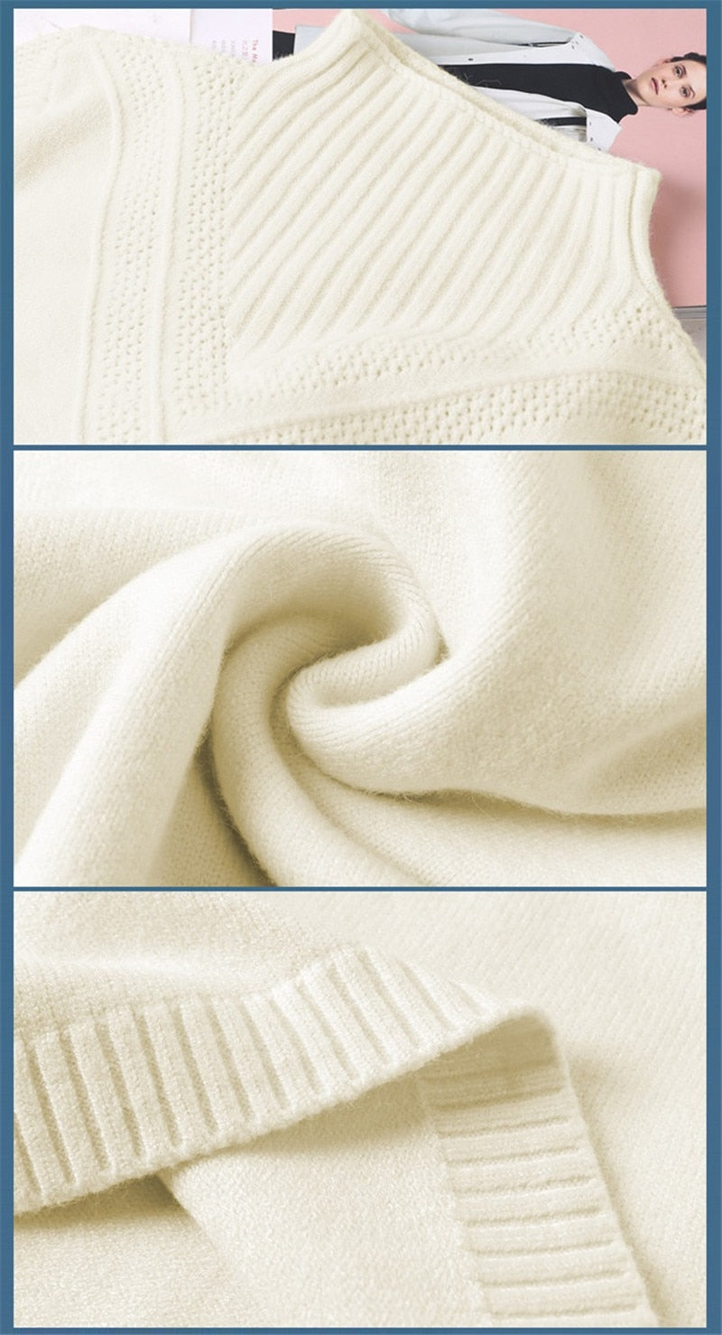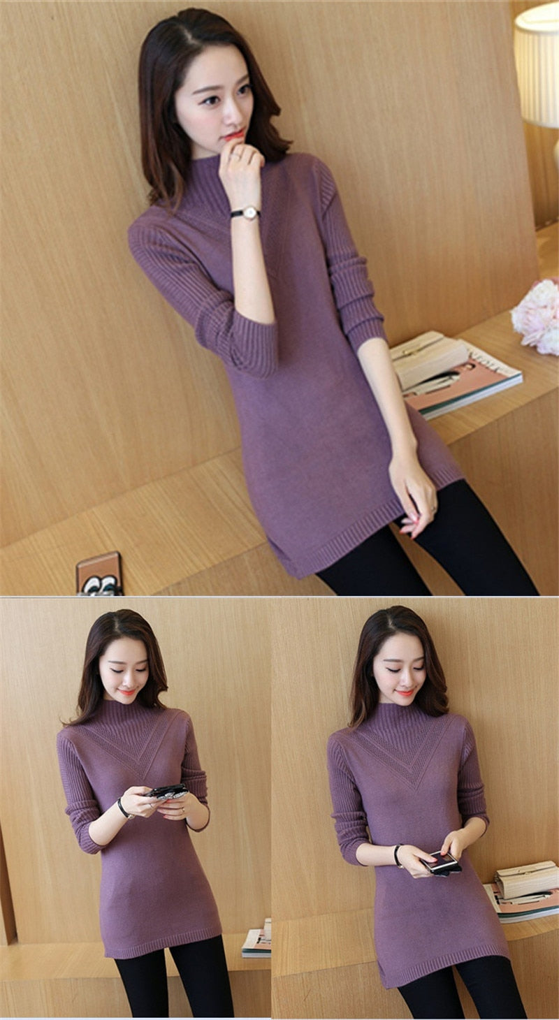 This knitted jumper is perfect for any chilly day. The material is cotton and polyester and is extremely warm. It is also made with a high neckline and long sleeves to help keep you warm.