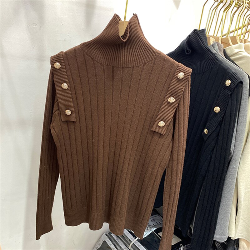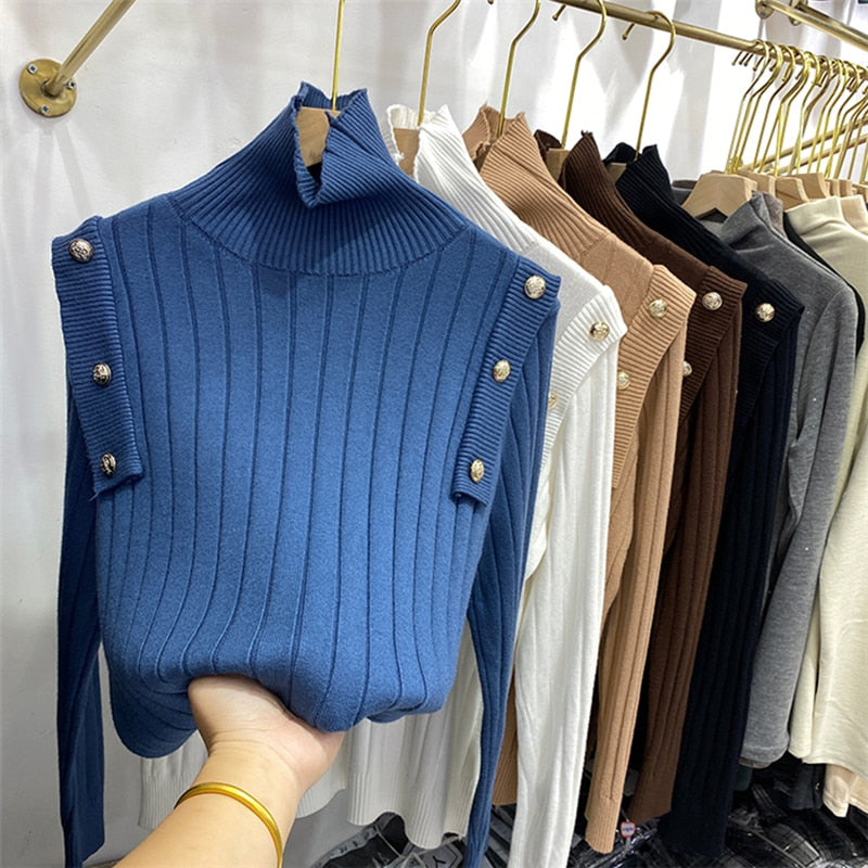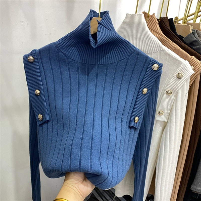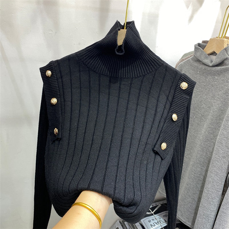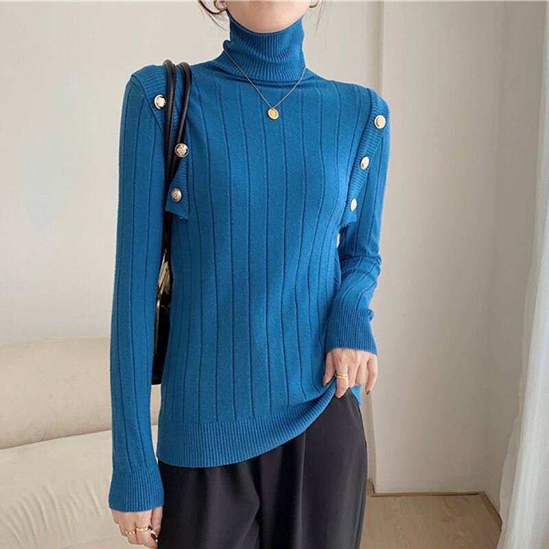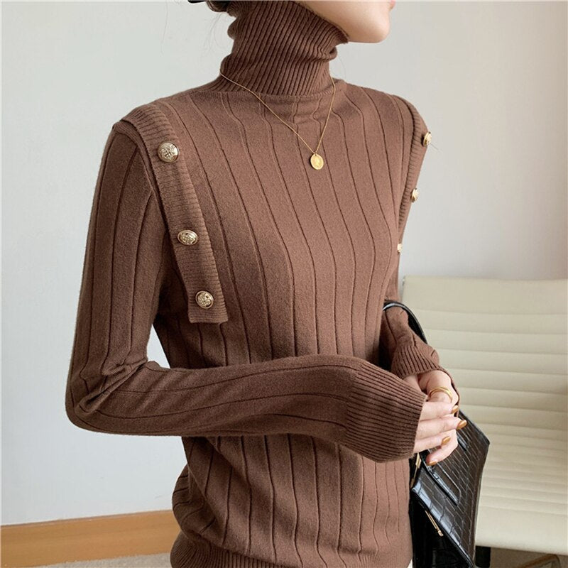 This classic long sleeve turtle-neck knitted top features intricate button detailing for a sophisticated look and feel. The soft fabric is perfect for year round wear, providing comfort and warmth while still maintaining breath-ability. The timeless design ensures it will easily transition from the office to a night out with the girls.