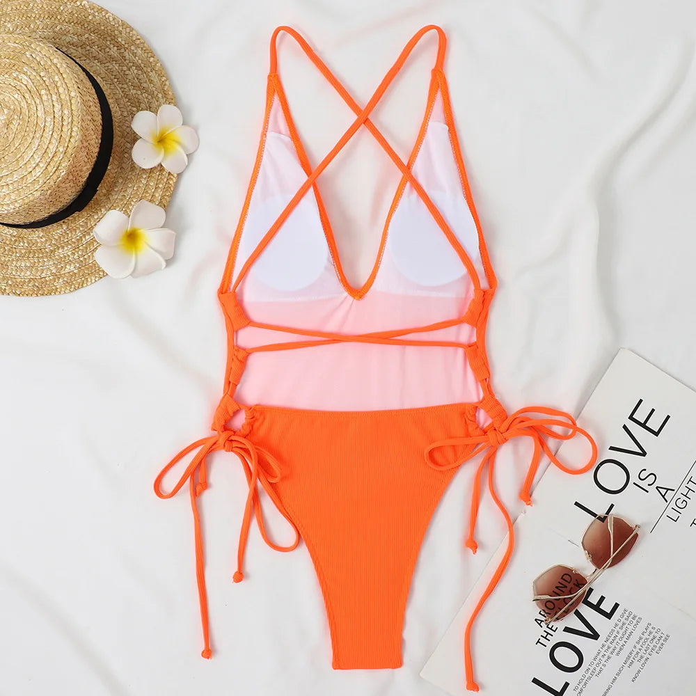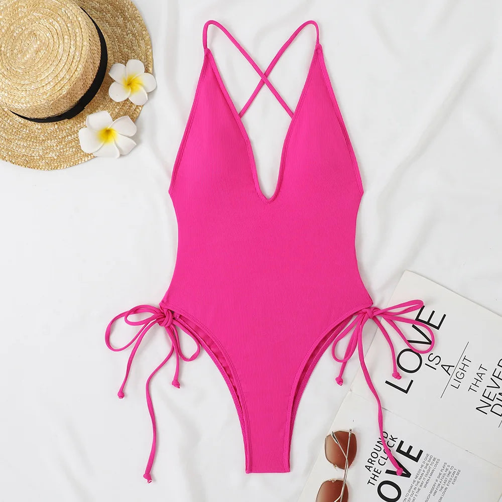 Get ready to turn heads with our backless deep cut one piece swimsuit. This trendy and stylish piece features a flattering cut, perfect for accentuating your curves and giving you confidence as you hit the beach or pool. Dive into summer with this must-have swimsuit.