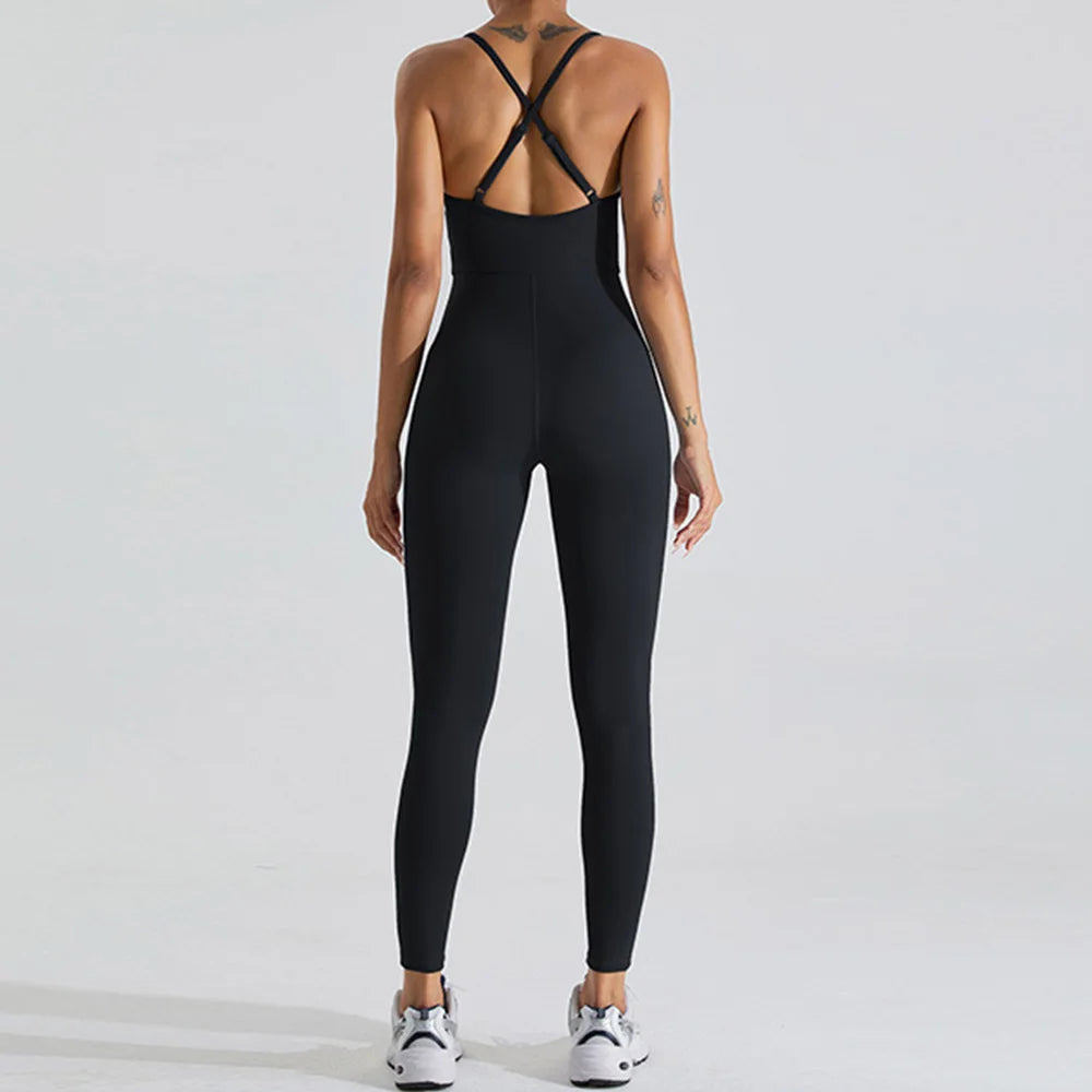 Introducing the Backless Yoga Fitness Sports Jumpsuit, the ultimate workout outfit for women.