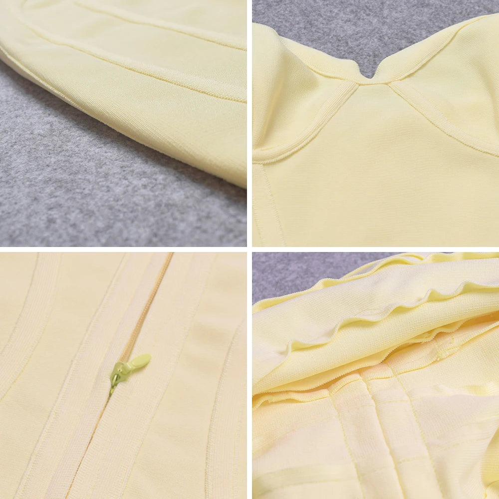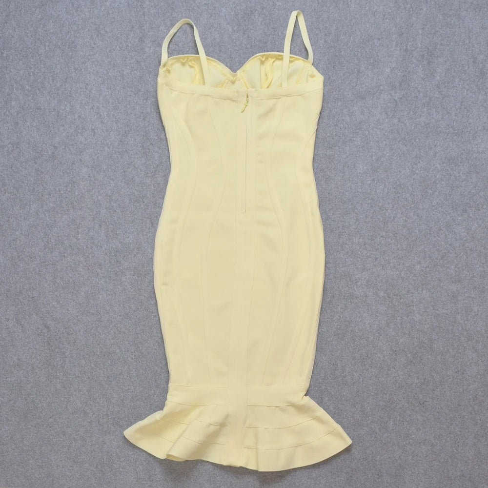 Flatter your figure with our Bodycon Bottom Ruffle Bandage Dress. This dress hugs your curves and adds a touch of elegance with its playful ruffle detail. Perfect for any occasion, this dress will make you feel confident and stylish.