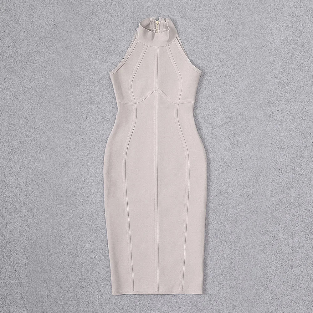 This elegant high neck bandage dress exudes sophistication and class. The high neck adds a touch of elegance while the bandage design creates a flattering silhouette. Perfect for formal occasions, this dress will make you stand out and feel confident.