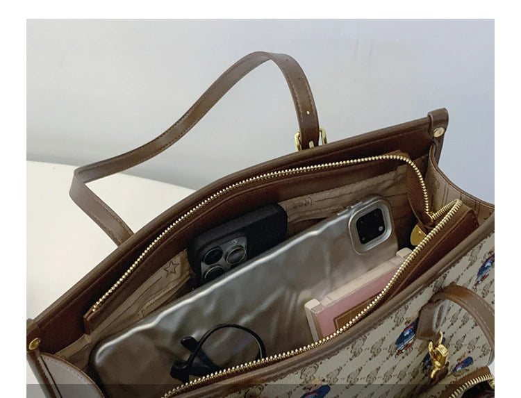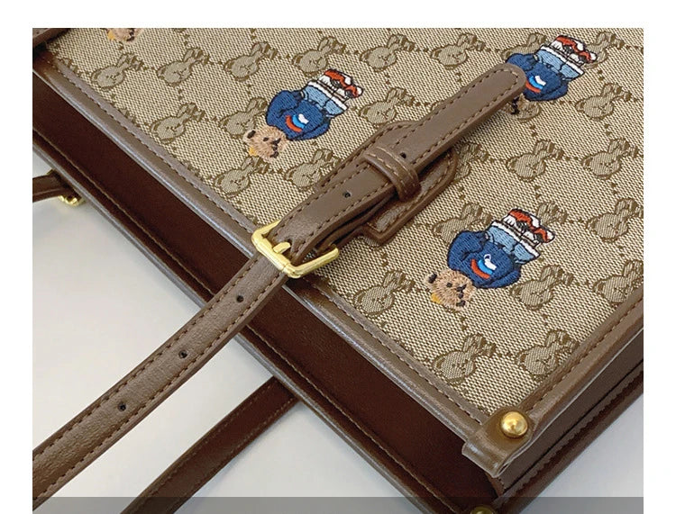 Upgrade your everyday style with our embroidered cartoon tote handbag. Perfect for carrying all your essentials, this bag features detailed embroidery that adds a touch of whimsy to any outfit. With its sturdy construction and spacious interior, you'll love this bag as both a fashion statement and a reliable accessory.