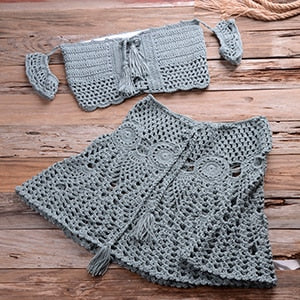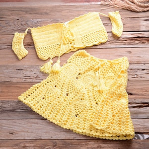 Look summer-ready in this beautiful Boho off-shoulder crochet bikini set. The crochet detailing adds an element of subtle sophistication, perfect for a beach look that stands out. The off-shoulder design provides additional coverage for a comfortable and stylish swimsuit.