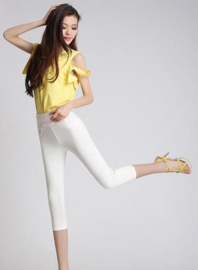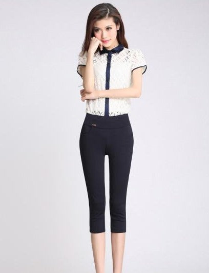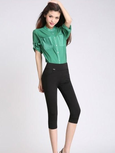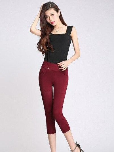 The Capri skinny trousers are designed to fit snug around the waist and hips. The sleek, slim leg of the Capri pant is designed to taper to a slim leg opening, making them perfect for pairing with a variety of shoes. They are made from cotton and polyester, which provides a comfortable and flattering fit.