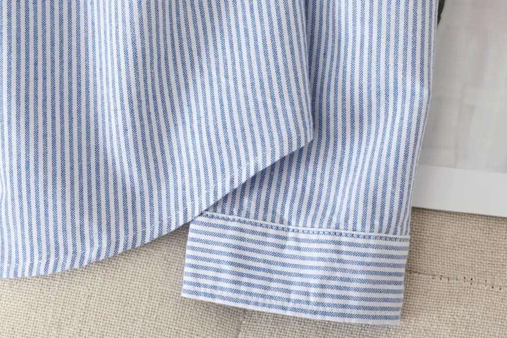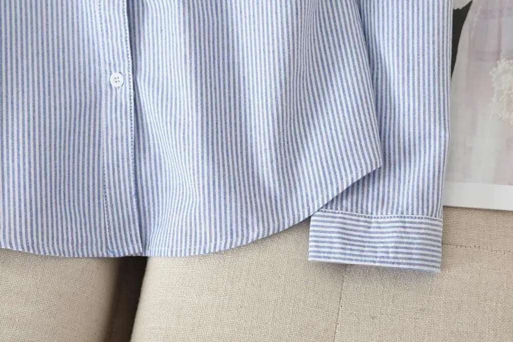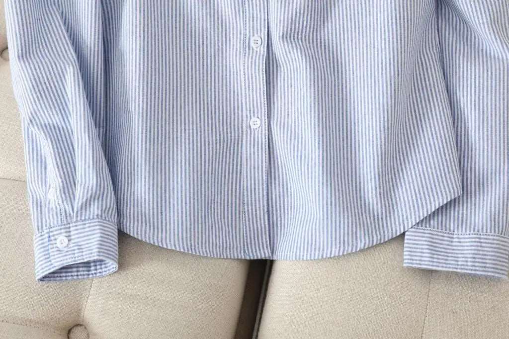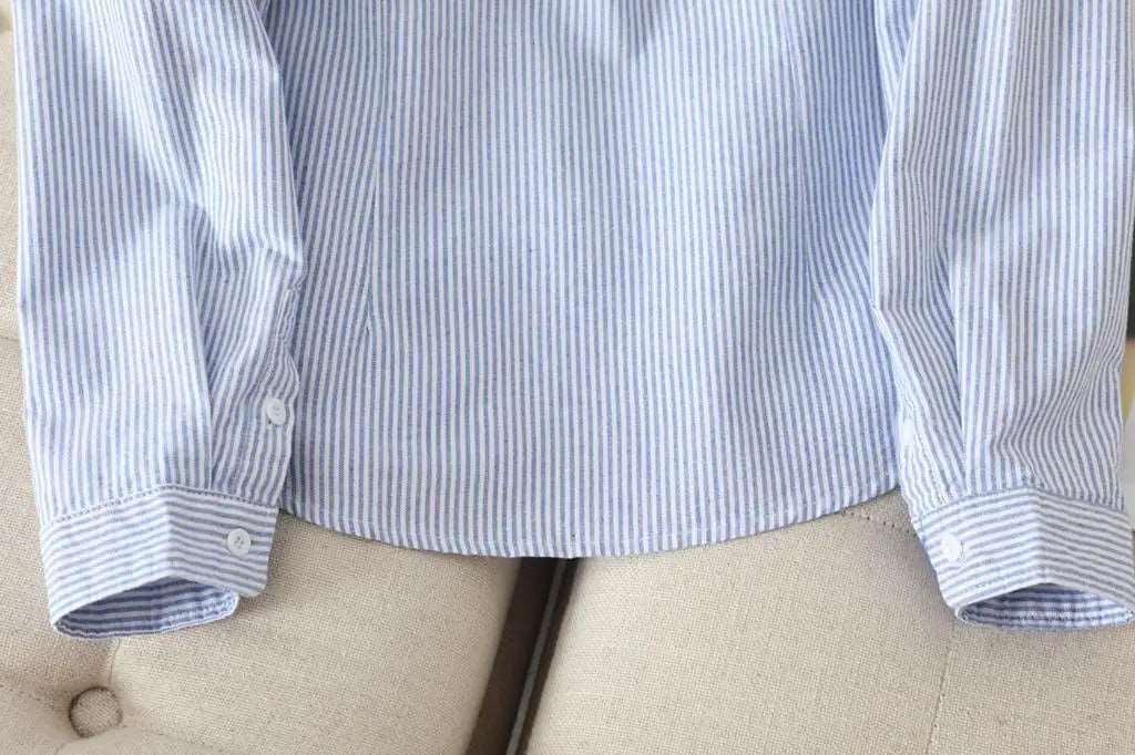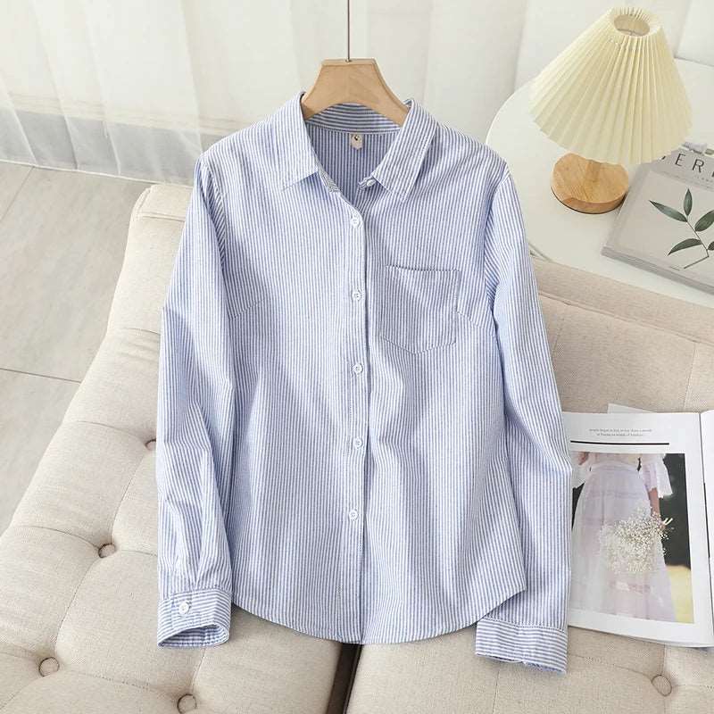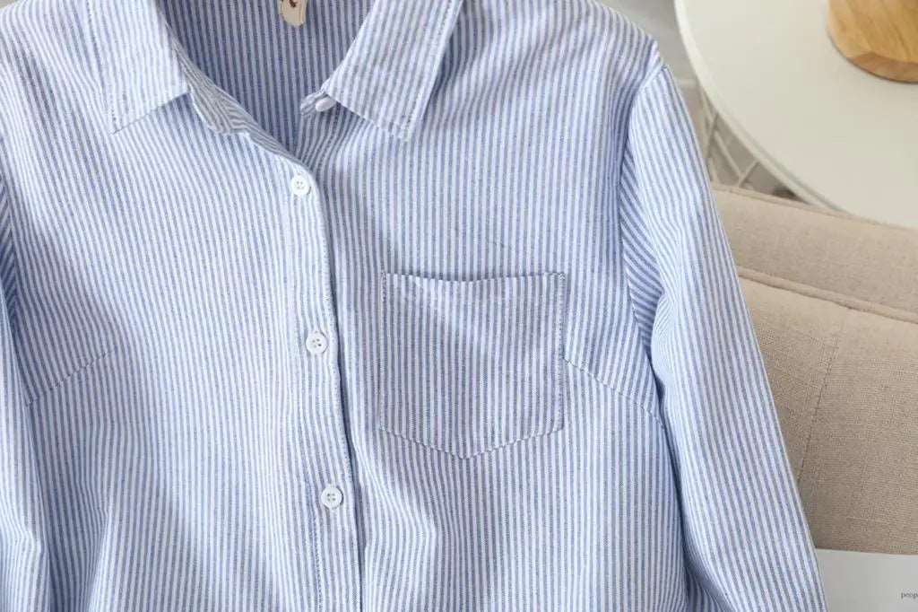 Introducing the Casual Cotton Women's Oxford Shirt, the must-have piece for your wardrobe this autumn. Made with high-quality cotton, this shirt is both comfortable and stylish. The pure colour and stripe pattern add a touch of sophistication, perfect for any occasion.