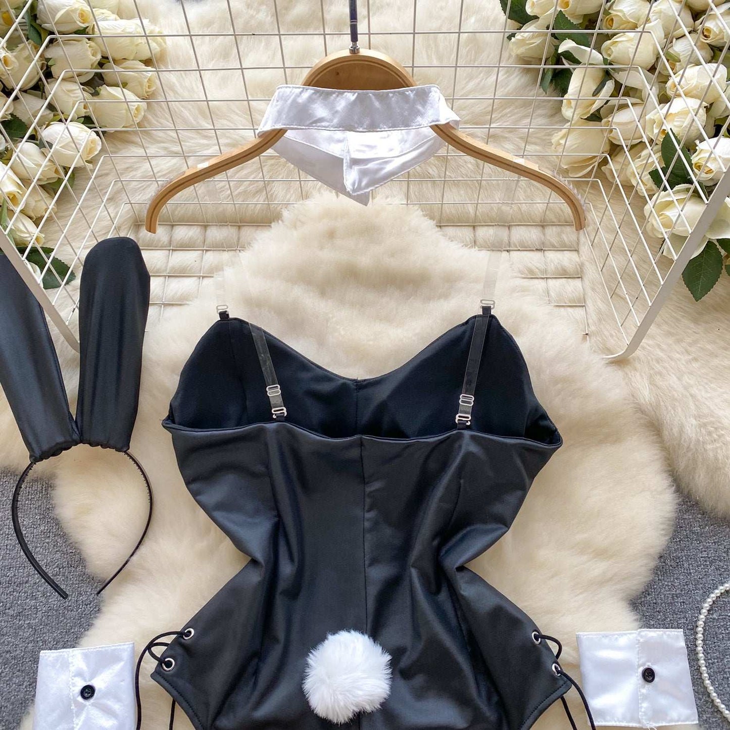 Made from high-quality polyester, this bodysuit is both comfortable and alluring. The one-piece combination features a backless design and a cute bunny motif, making it the perfect choice for a romantic evening in.