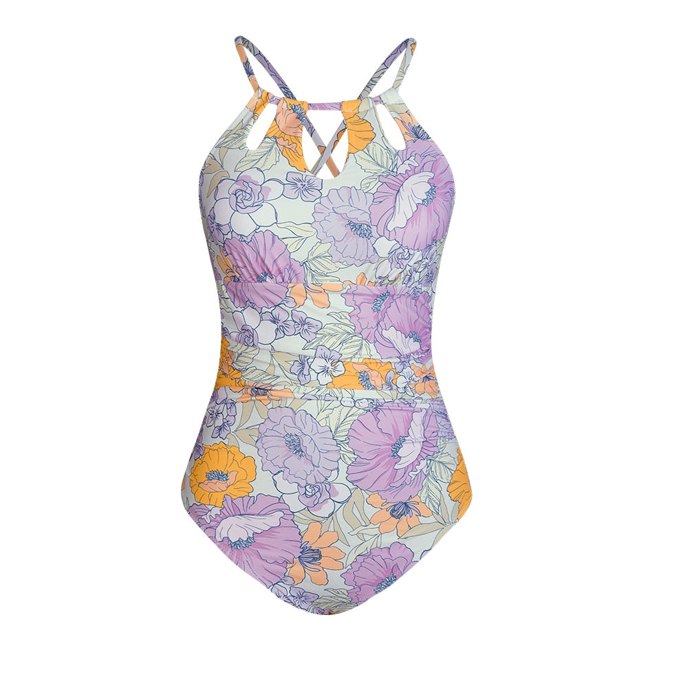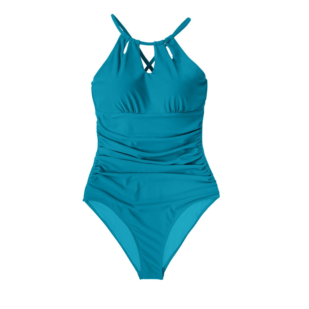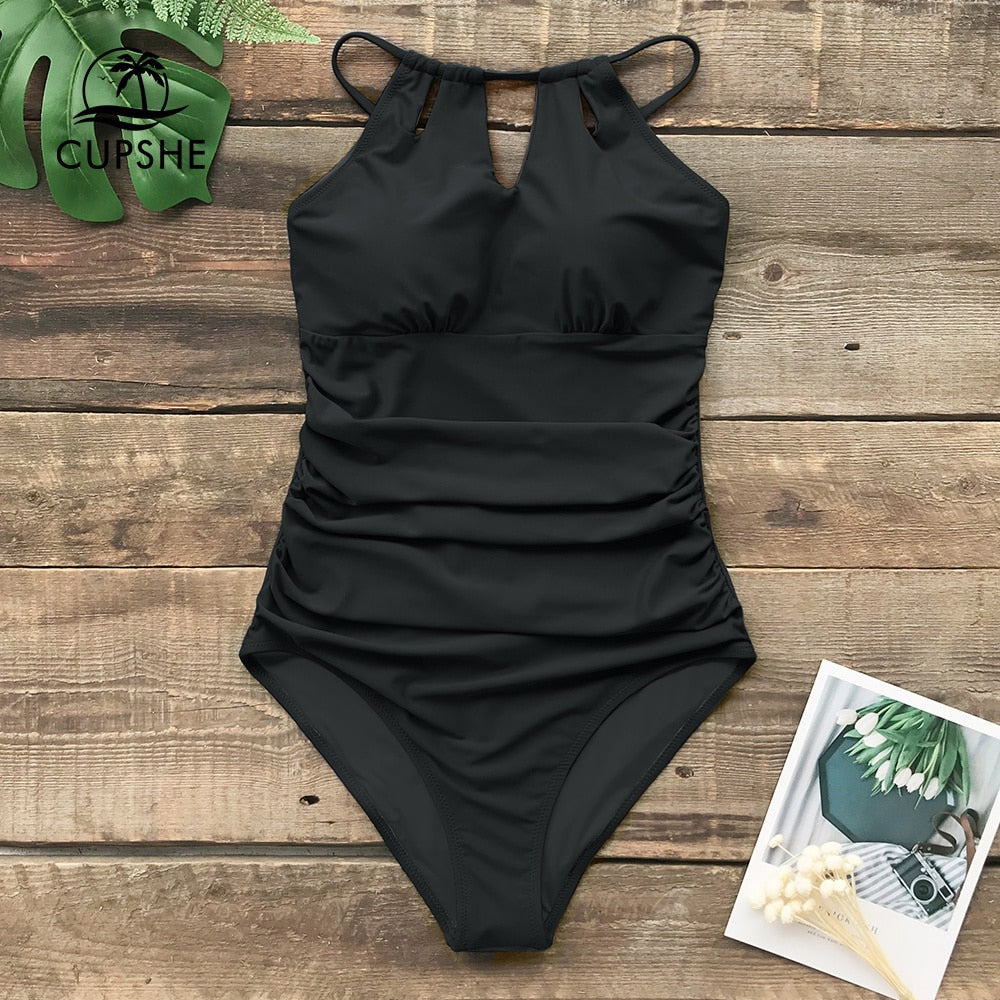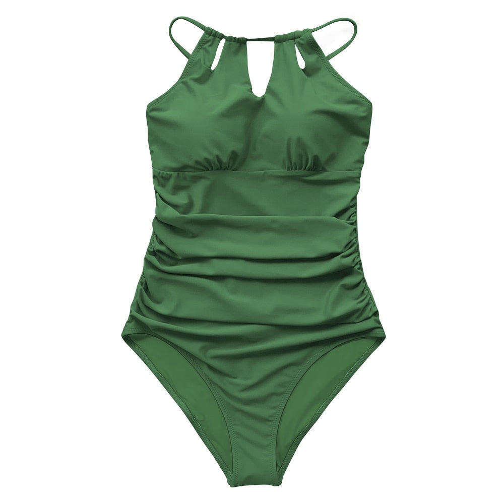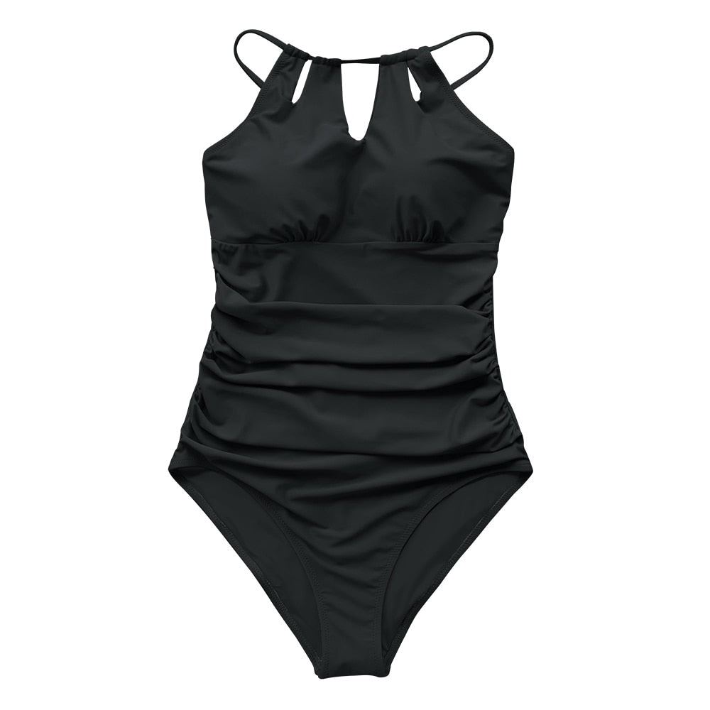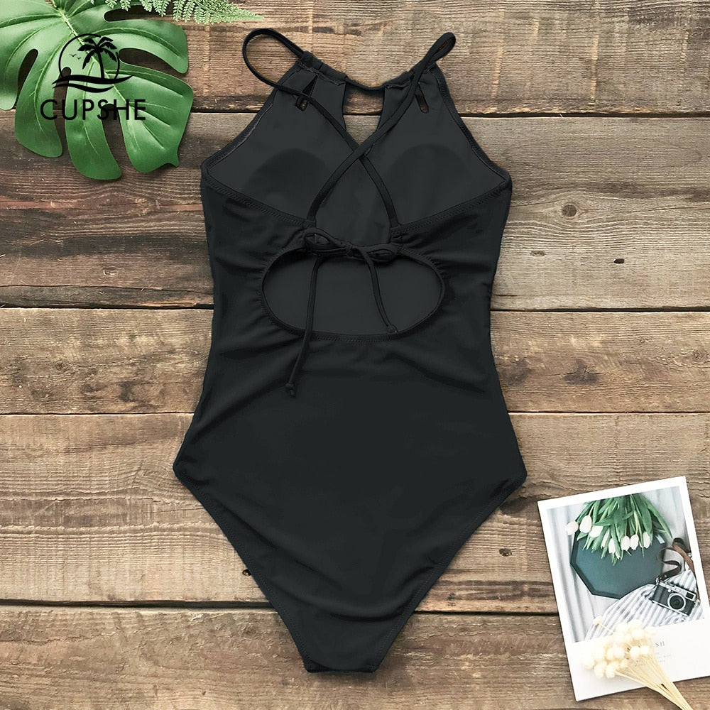 Ladies Lace Up Back One-Piece Cut Out black tummy control Swimsuit