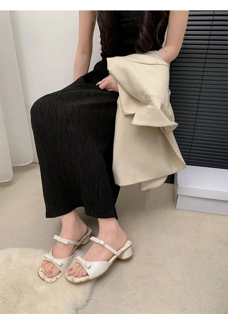 Introducing our designer summer women's open toe slippers, featuring a fashionable butterfly-knot design and a high heel for a touch of elegance. These sandals are perfect for outdoor parties and dressy occasions, adding a stylish touch to any outfit.
