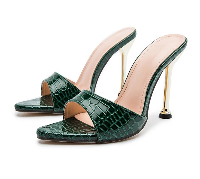 Step out in style with our Snake Print Pointed Toe Stiletto High Heel Sandals. The sleek pointed toe design combined with a stiletto heel adds a touch of sophistication to any outfit. The snake print pattern adds a trendy and unique element, making these sandals the perfect statement piece for any occasion.