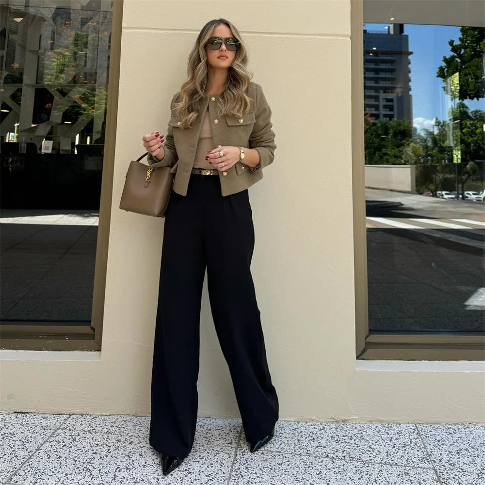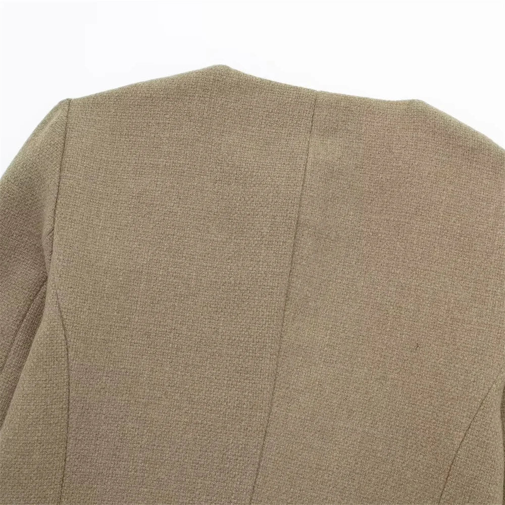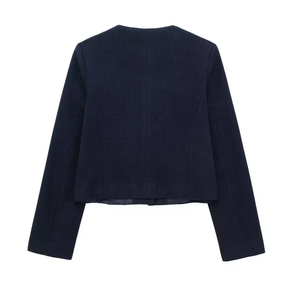 The flip decoration on the jacket adds a unique and eye-catching detail, making it stand out from the rest. The short suit style gives off a casual yet sophisticated vibe, making it suitable for any occasion. Whether you're heading to work or a night out with friends, this jacket will elevate your outfit and make you stand out.