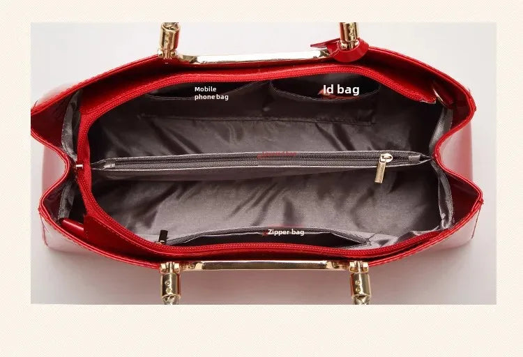 This stylish handbag is the perfect accessory for any fashion-forward woman. Made from high-quality PU material, it boasts a sleek and sophisticated design that is sure to turn heads. The patent leather adds a touch of luxury, making it a must-have for any wardrobe.