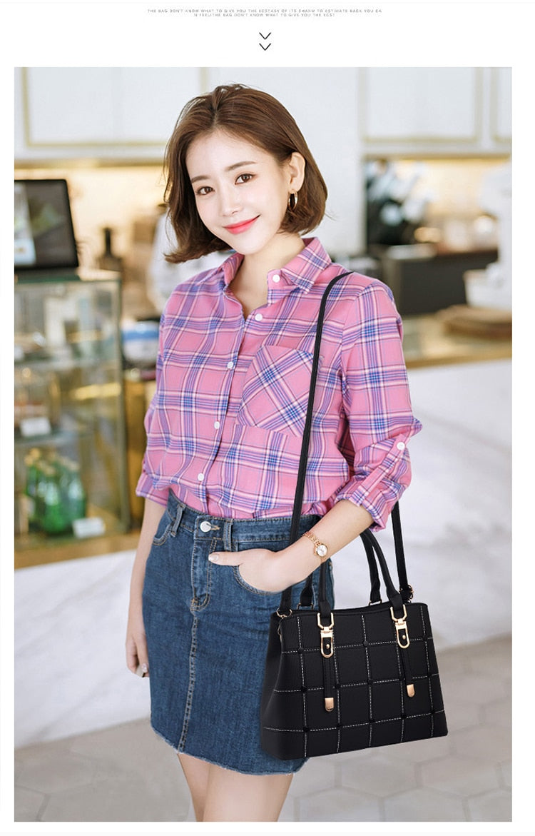 Available in four versatile colors - black, brown, red, and tan - this handbag is perfect for any outfit and occasion. The sleek and simple design makes it suitable for both casual and fashionable looks.