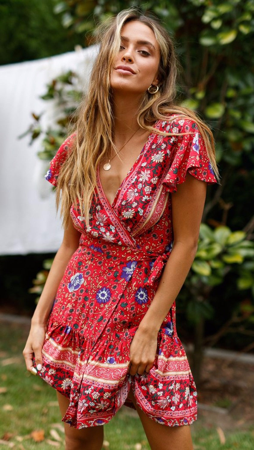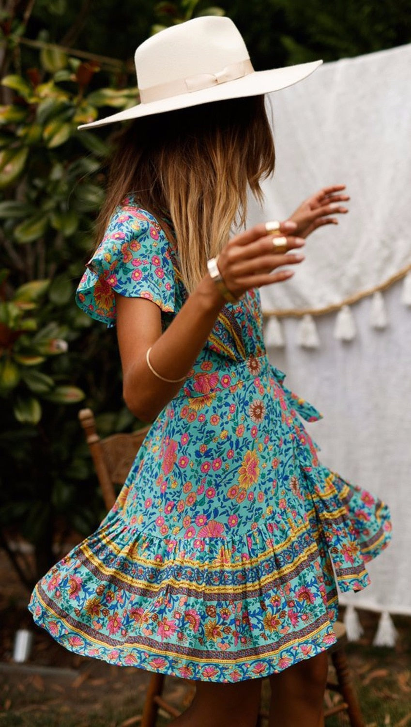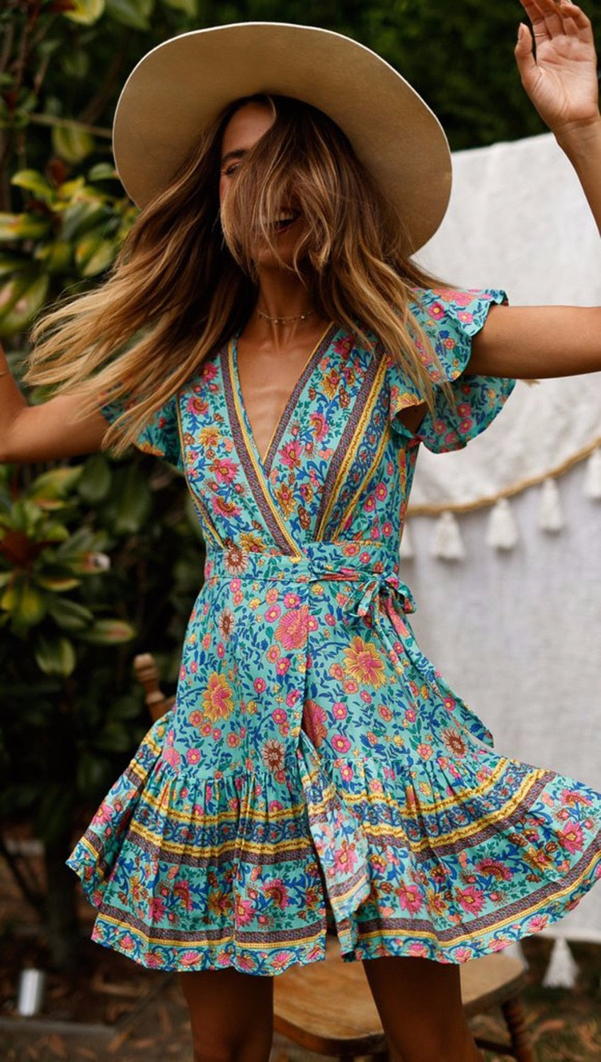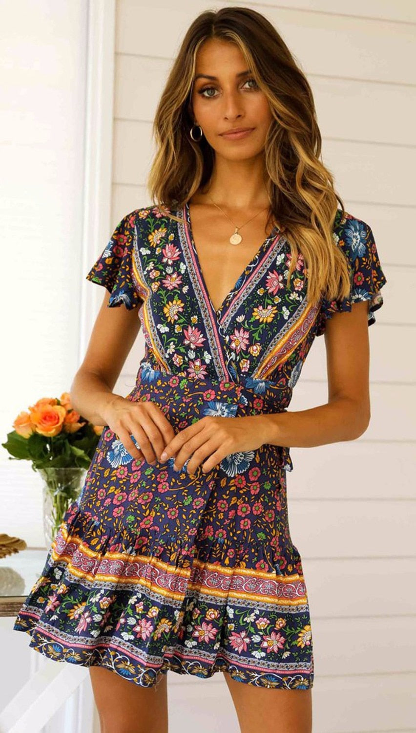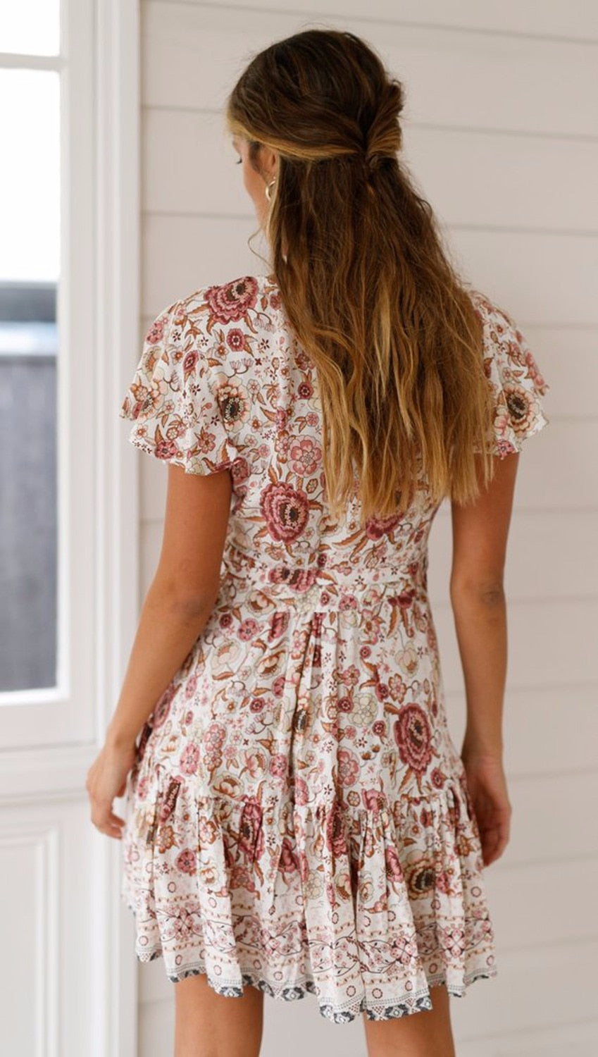 This dress is perfect for those hot summer days! The dress is made of a cotton blend fabric and has a beautiful floral print. The dress is made to be light and airy for the hot summer months. It can be worn for any occasion, such as work, school, or even a date.