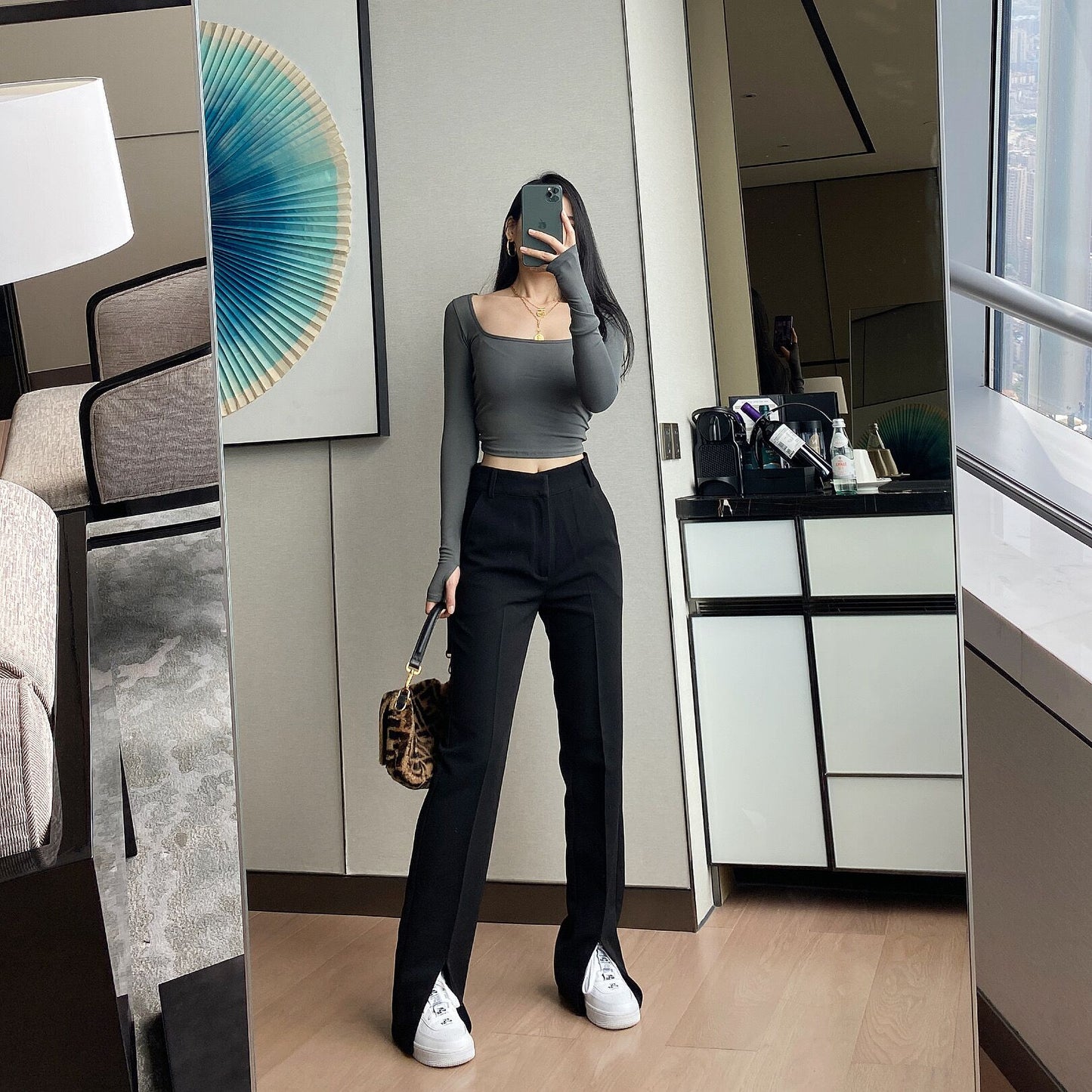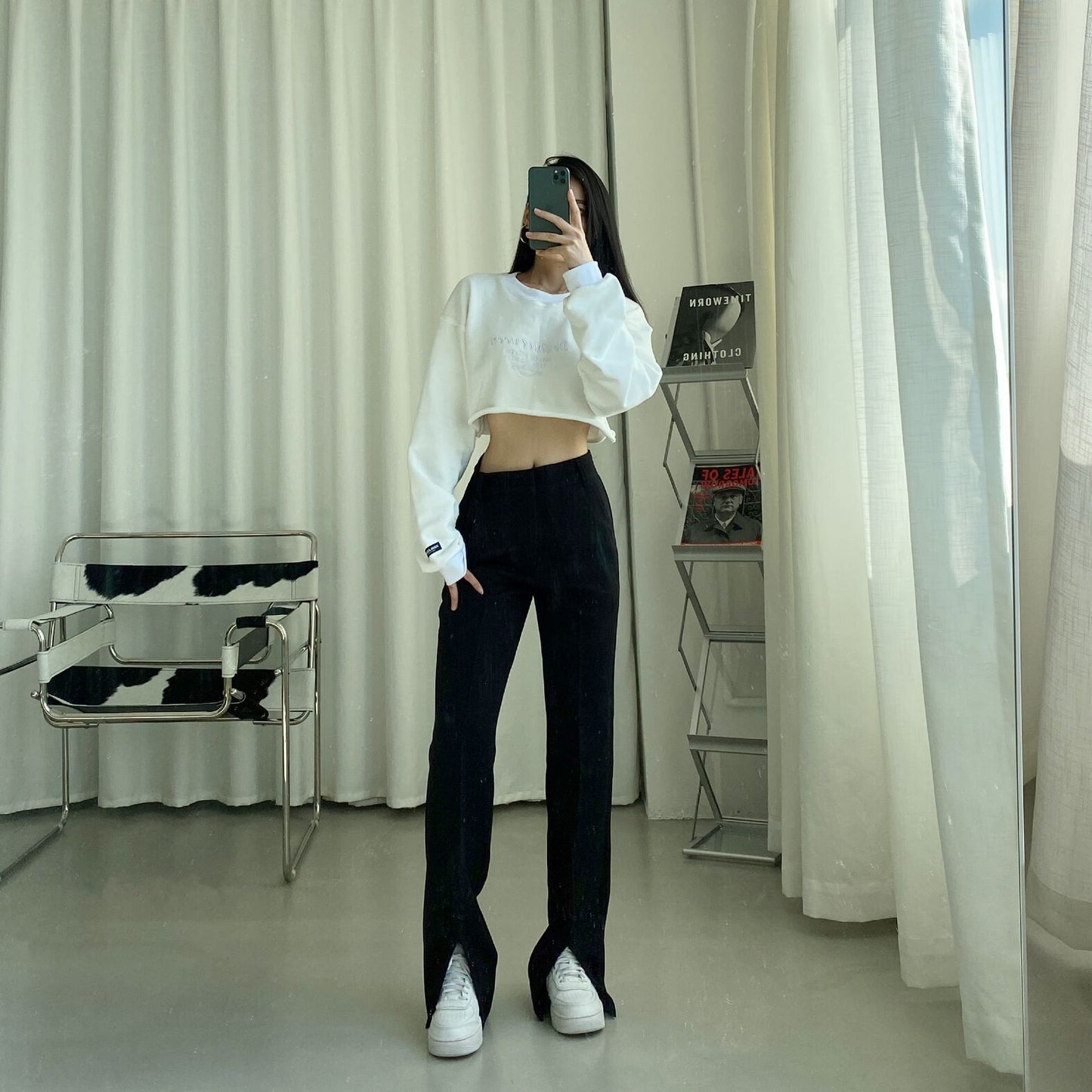 One size fits most These black trousers are designed to be worn with a split in the front. The material is a thick polyester that is soft to the touch. The material is also breathable, which will keep you cool and comfortable.