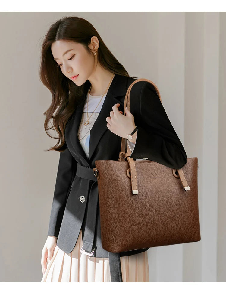 With its spacious interior and multiple compartments, this handbag is perfect for everyday use, whether you're heading to work or running errands. The solid colour design adds a touch of elegance, making it suitable for any occasion.