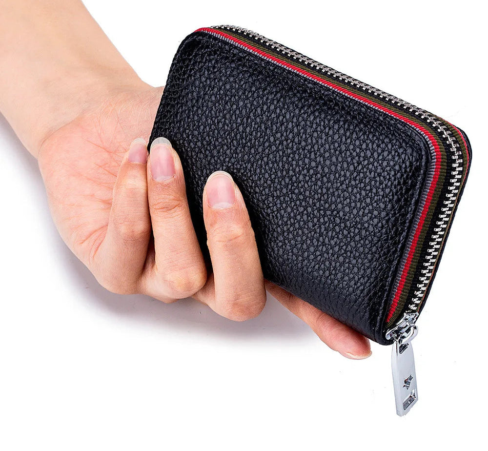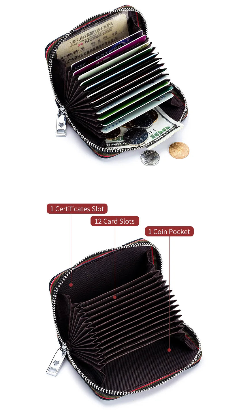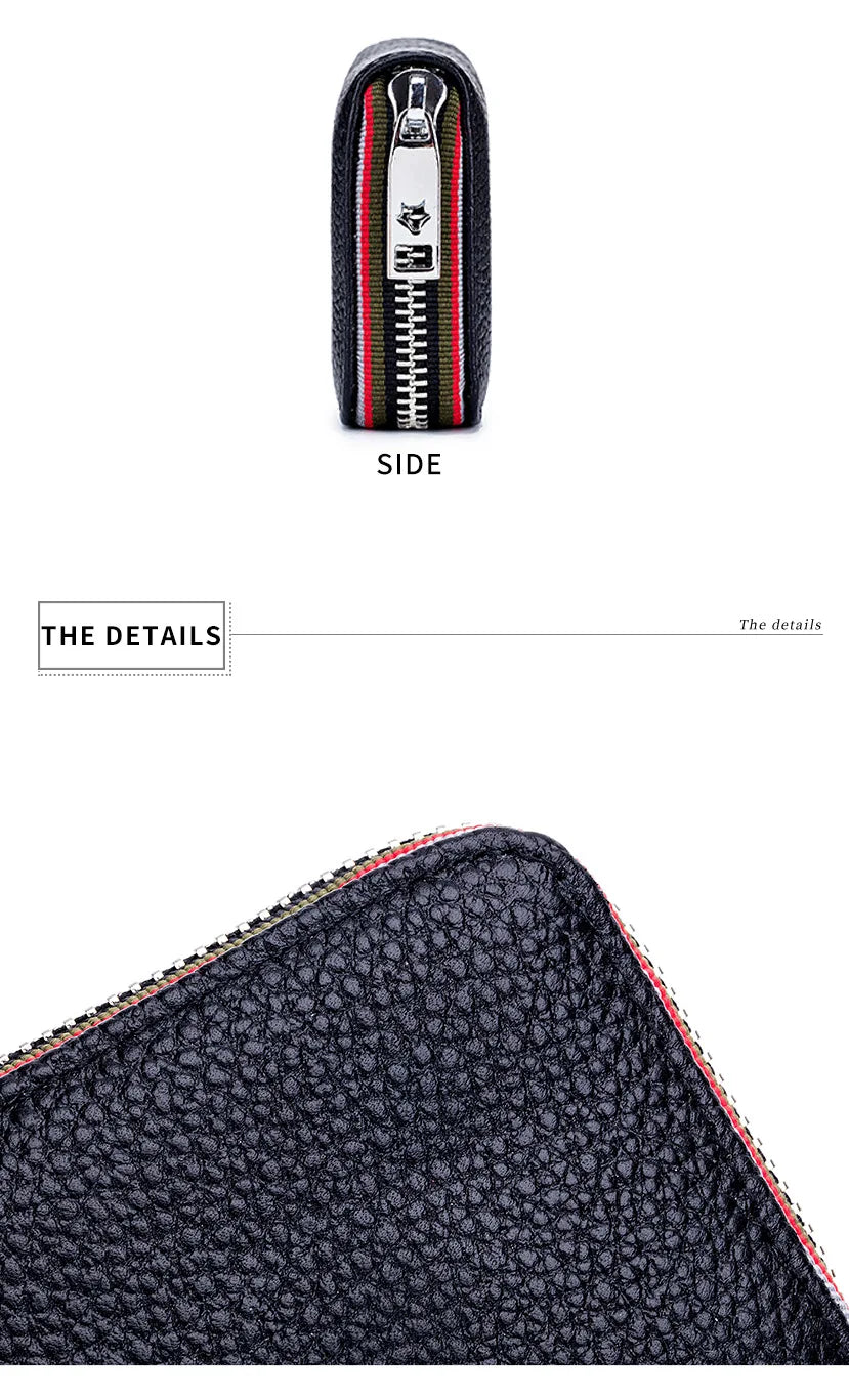 This genuine leather zipper wallet coin purse is a functional and stylish accessory. With its durable and high-quality material, it will keep your coins and cards secure. Its convenient zipper design allows for easy access, making it the perfect wallet for on-the-go use.