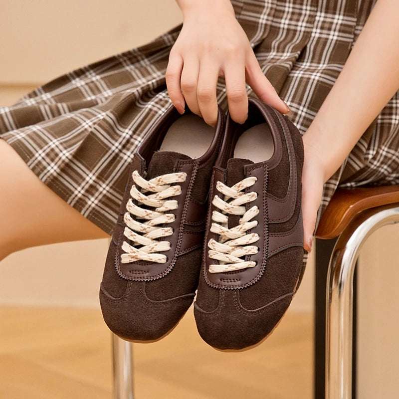 Introducing our latest addition to the footwear collection - the Fashionable Flat Lace-up Retro Sneakers Trainers.