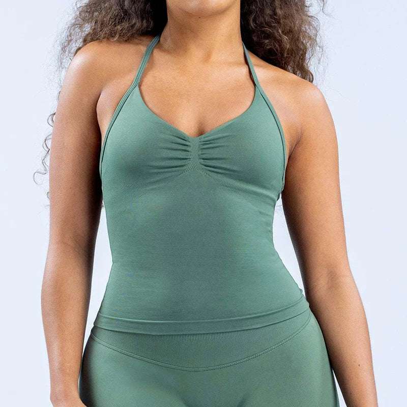 Upgrade your workout wardrobe with this open back halter strappy sports yoga vest and experience comfort, style, and support all in one. Shop now at IMKOLOR and take your workouts to the next level!