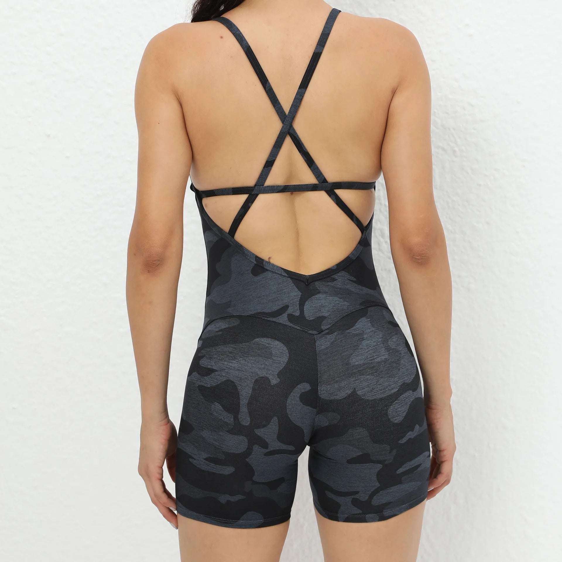 Introducing the Back Straps One Piece Shorts Sports Jumpsuit, the perfect addition to your workout wardrobe.