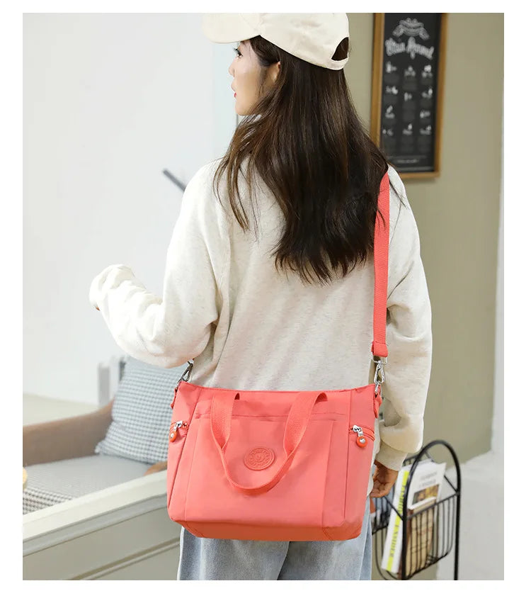 Stay stylish and organized with our Waterproof Nylon Shoulder Handbag. Made with high-quality nylon material, this handbag is durable and water-resistant, making it perfect for everyday use and travel. The adjustable belt design allows for a comfortable fit, while the spacious interior features a cell phone pocket and zipper pocket for easy organization.