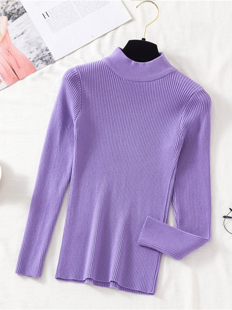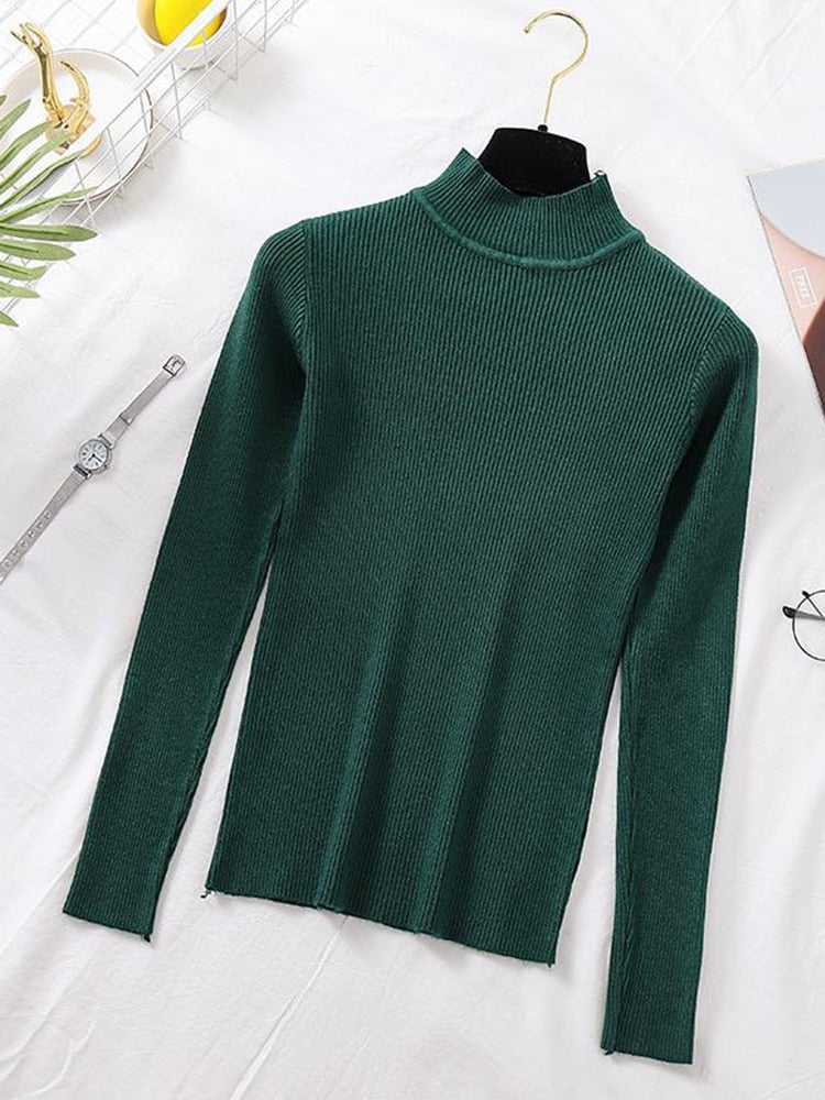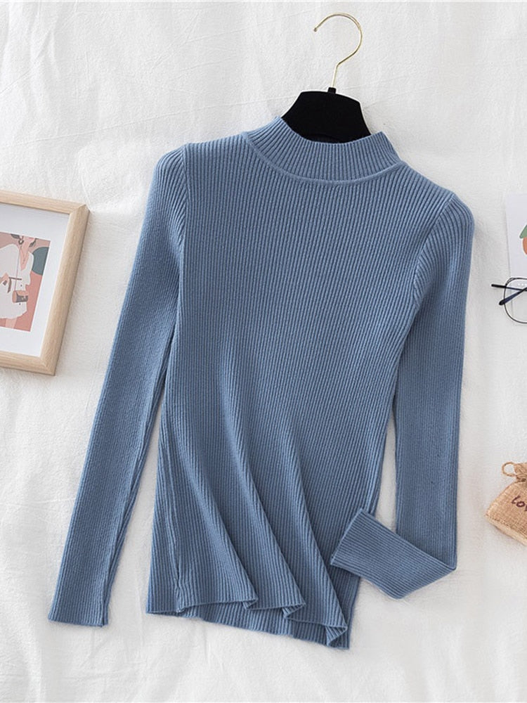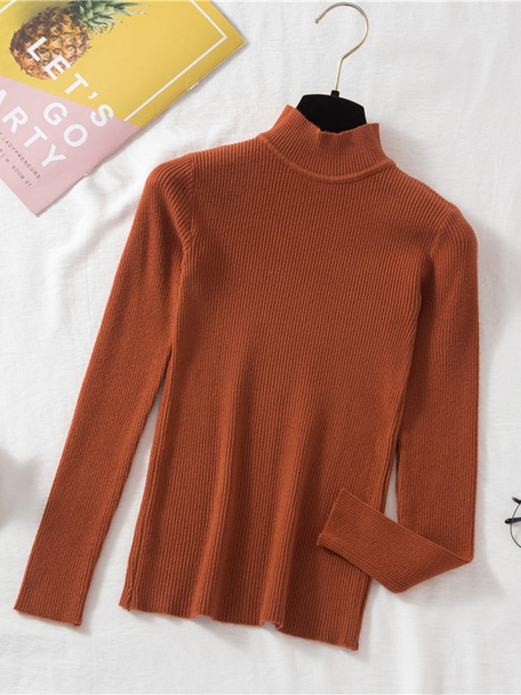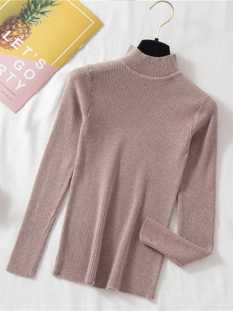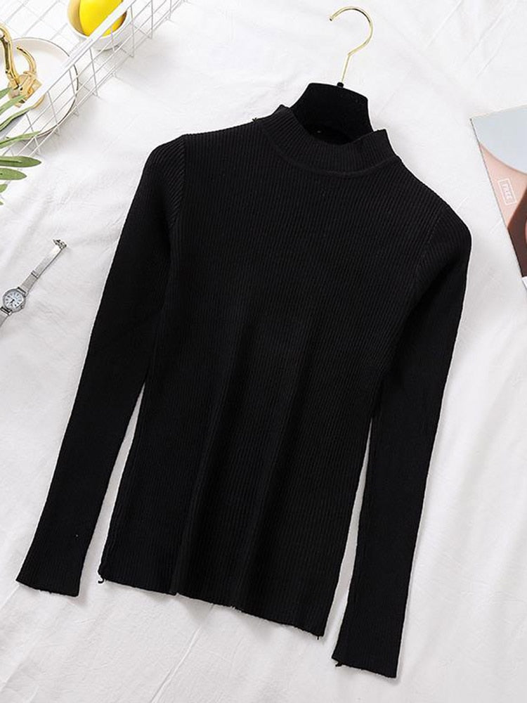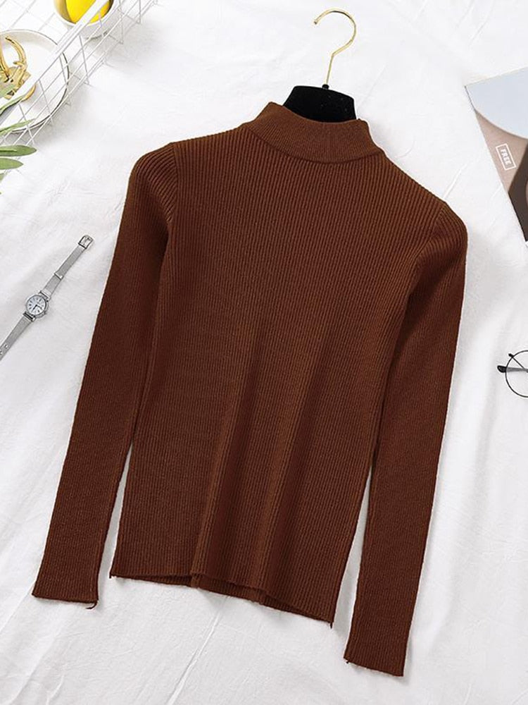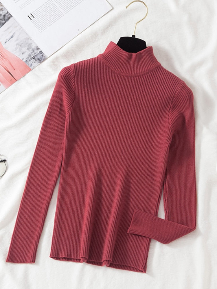 Stay stylish and comfy with this classic Turtleneck Ribbed Knitted Pullover Top. The ribbed knitted top features a turtleneck and long sleeves, adding an extra layer of comfort and warmth. Perfect for cooler days.
