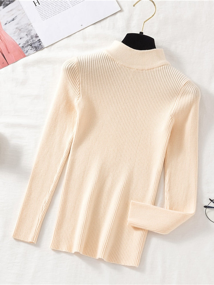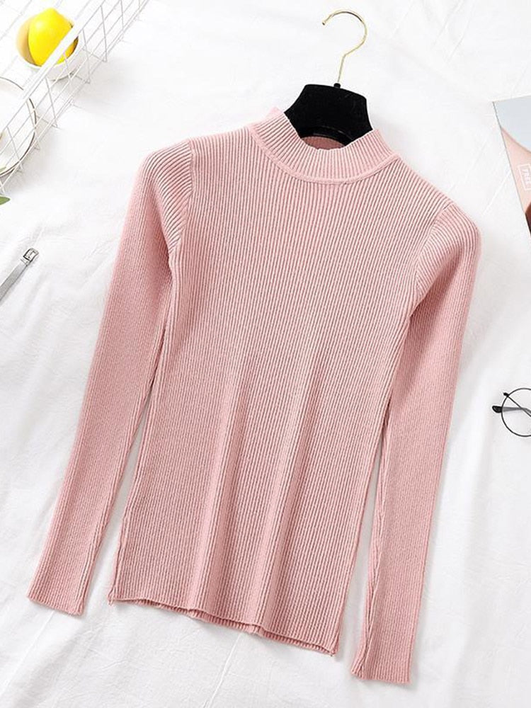 Turtleneck Ribbed Knitted Pullover Top