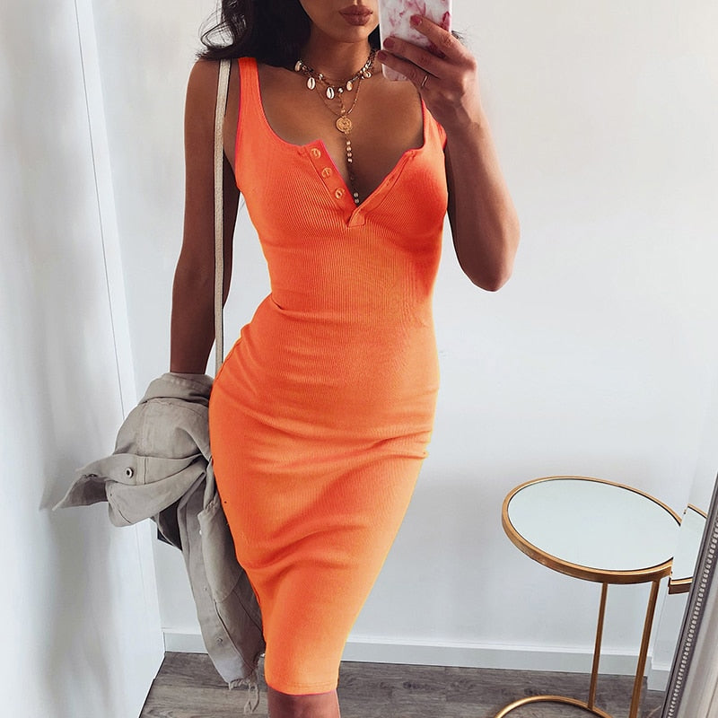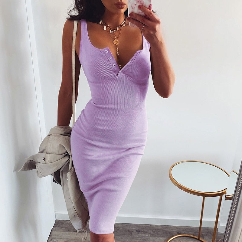 This bodycon dress features a sleeveless design with a knee-length hemline. The stretchy fabric will ensure a comfortable fit, and the fitted silhouette will show off your curves. This dress can be worn to work, or you can spice it up with a blazer and a pair of heels for a night out. Pair it with black tights and a chunky necklace for a trendy outfit.