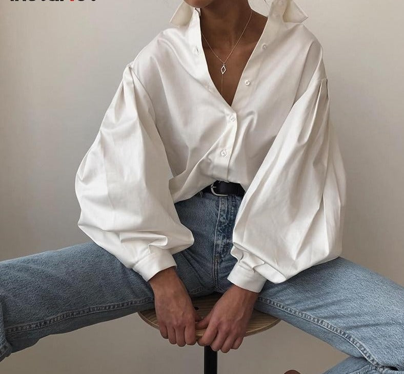 This fashionable shirt is perfect for any outdoor event, casual outing, or for dressing up for a night out. With a long sleeve, this shirt is versatile and stylish. Made of a cotton blend, this shirt is comfortable and breathable. A button-down collar and the lantern sleeves complete the look.